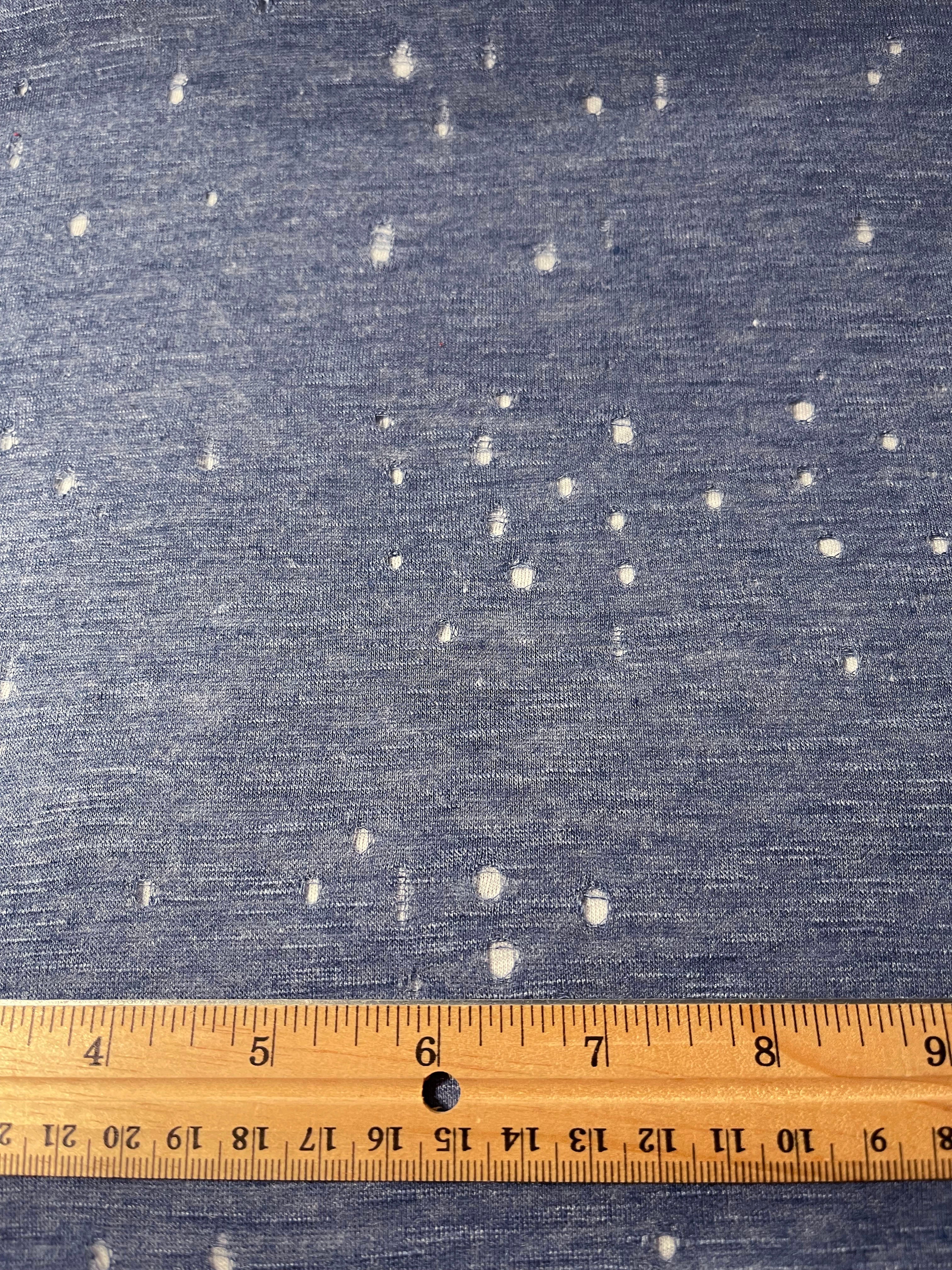Heather Indigo Blue Distress Cut Jersey Knit Fabric