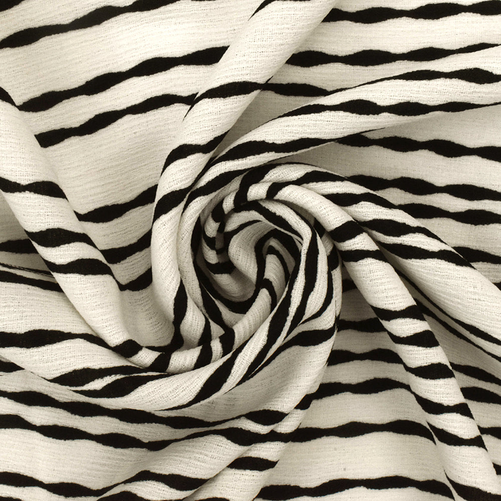 Ivory-Black Bump Stripe Printed Striated Texture Crepe Fabric