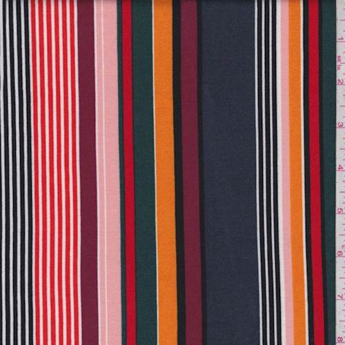 Navy/Spruce/Wine Multi Stripe Double Brushed Jersey Knit Fabric