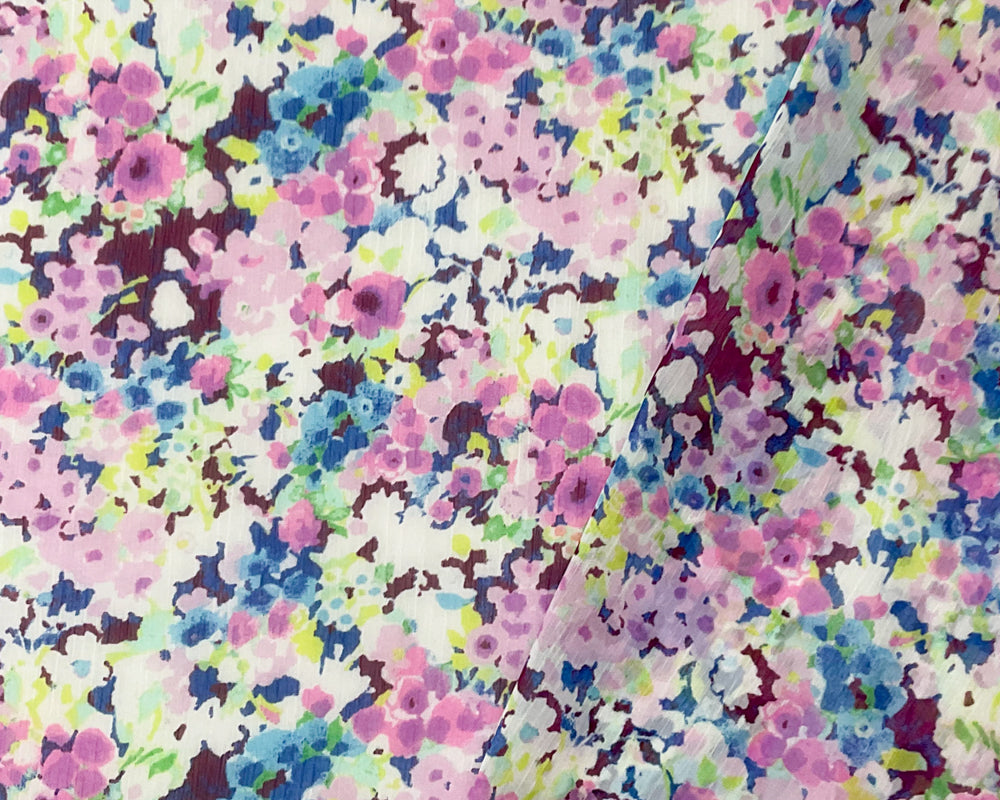 Purple-Multi Poly Floral Print Crinkle Yoryu Chiffon Woven Fabric