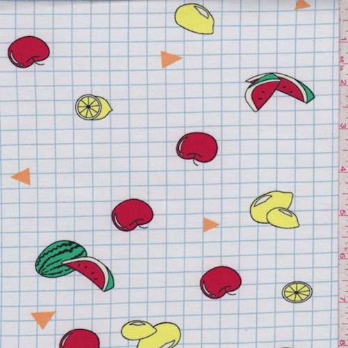 White Grid/Fruit Double Brushed Jersey Knit Fabric