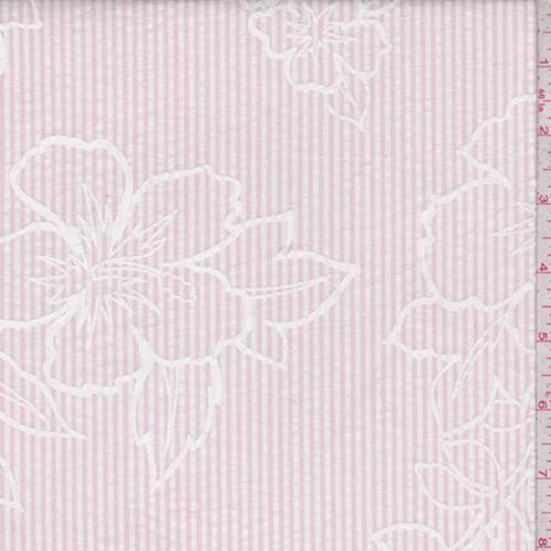 White/Pale Pink Stripe Floral Seersucker Fabric