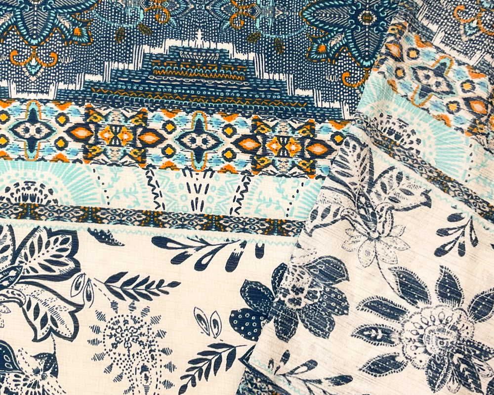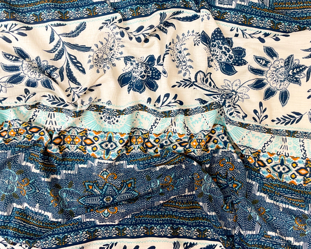 Blue-Multi Stretch Aztec Stripe Print Slub Knit Fabric