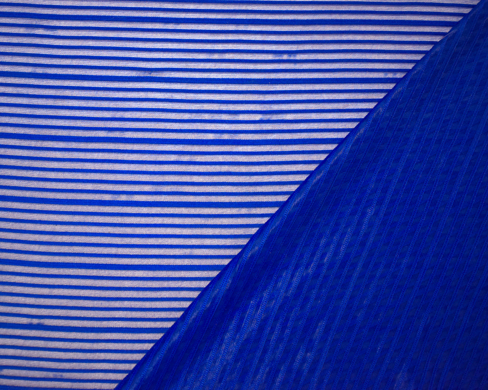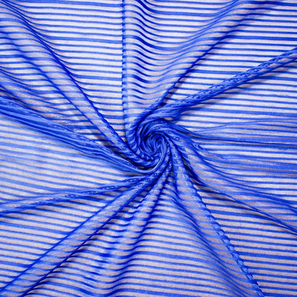 -Blue Poly Stretch Spandex Rib Like Mesh Knit Fabric