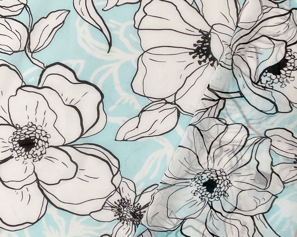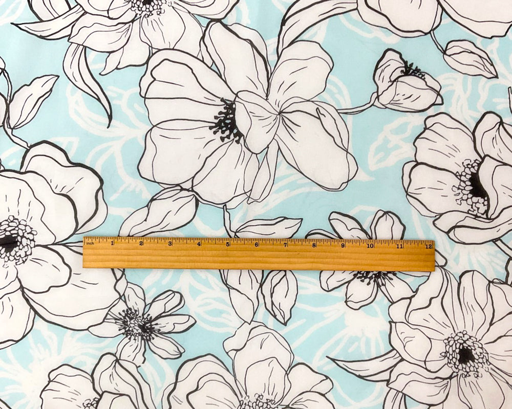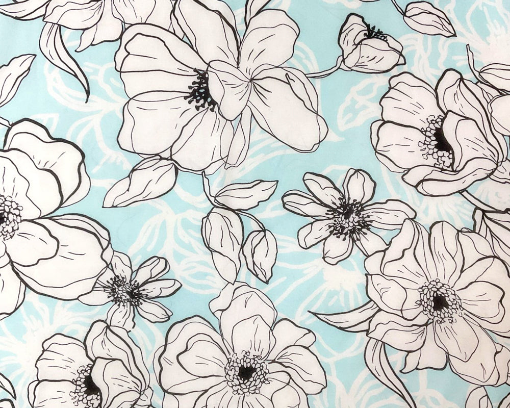 -Blue-White-Black Poly Floral Printed Chiffon Woven Fabric
