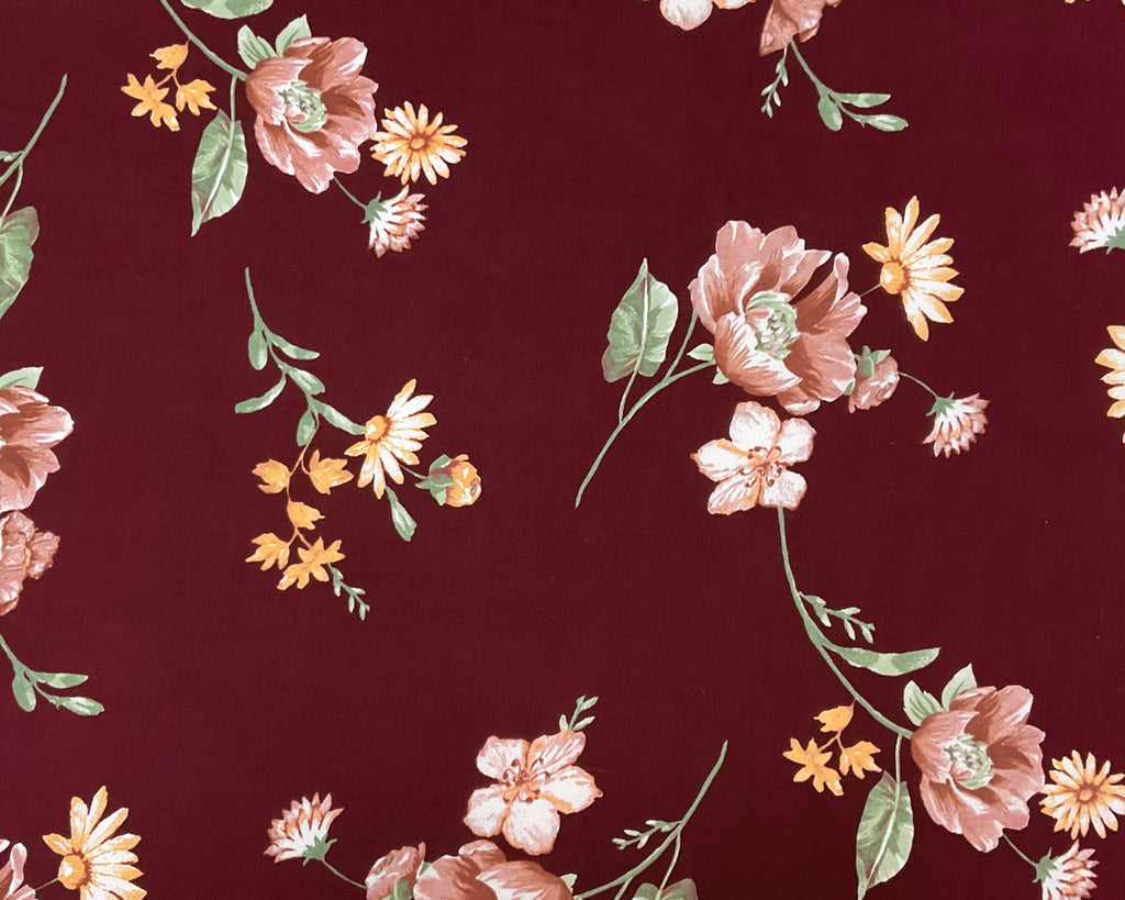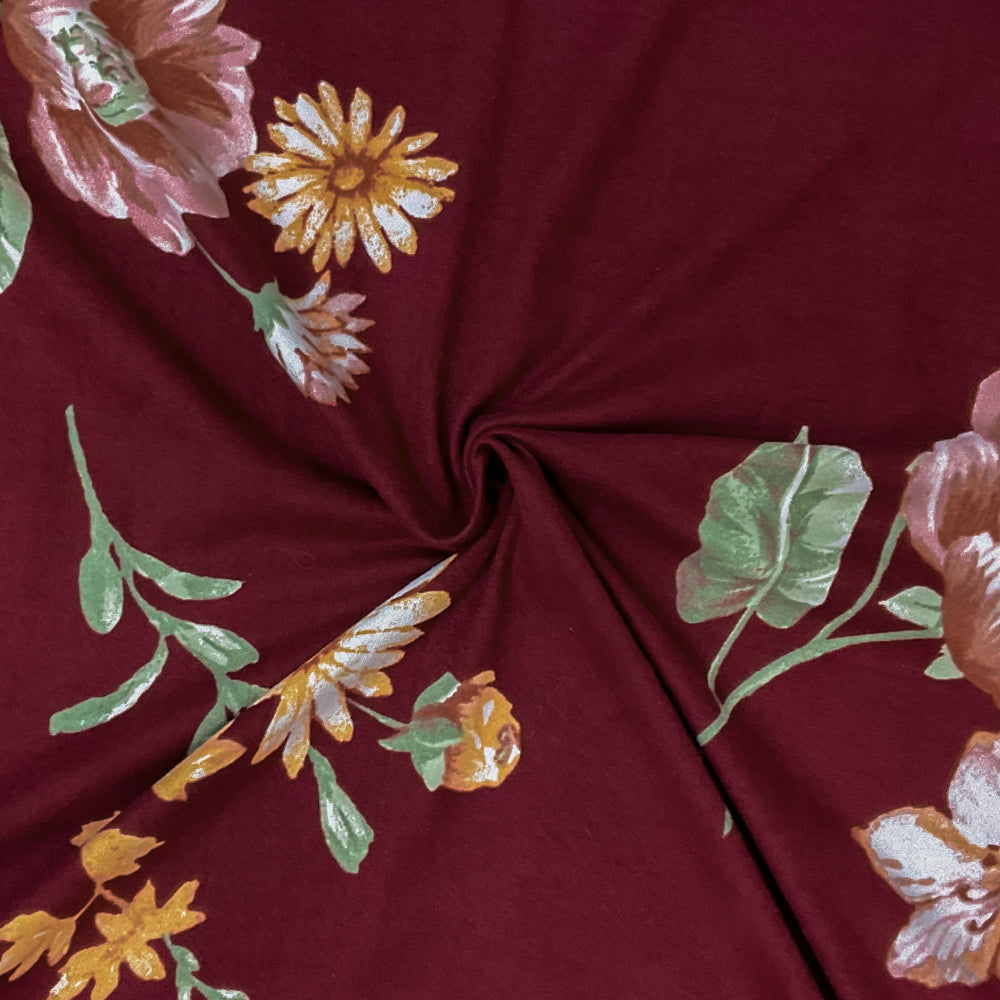 Red-Multi Poly Spandex Stretch Floral Print DB Jersey Knit Fabric