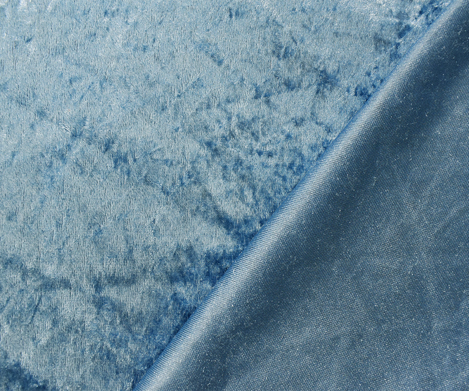 Blue Poly Stretch Spandex Solid Crushed Velvet Knit Fabric