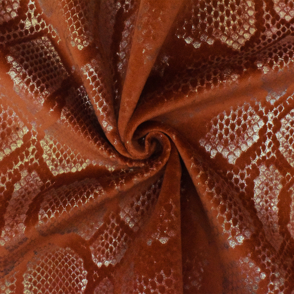 Rust Brown-Gold Snake Foil Print Poly Cotton Velvet Home Decorating Fabric