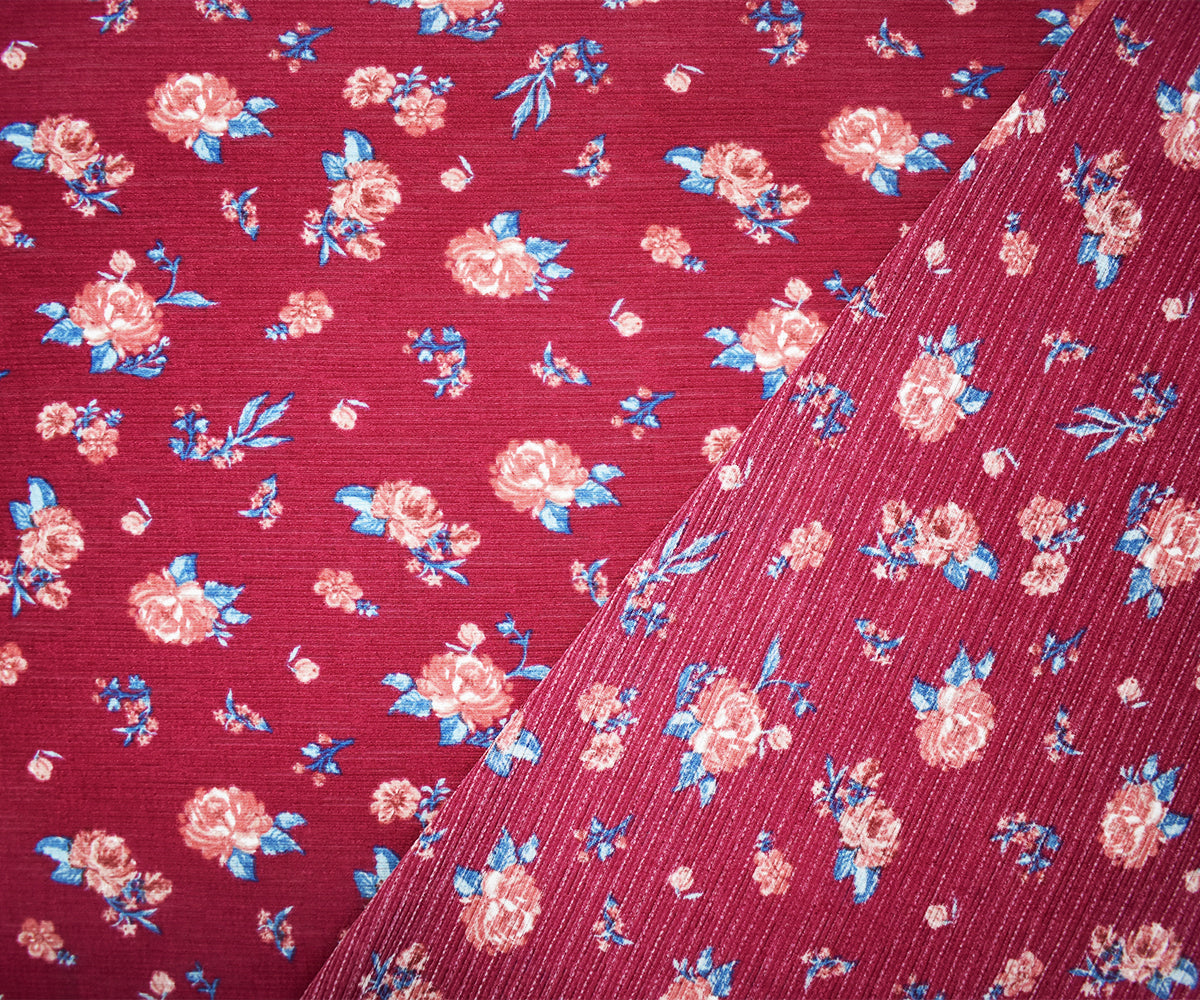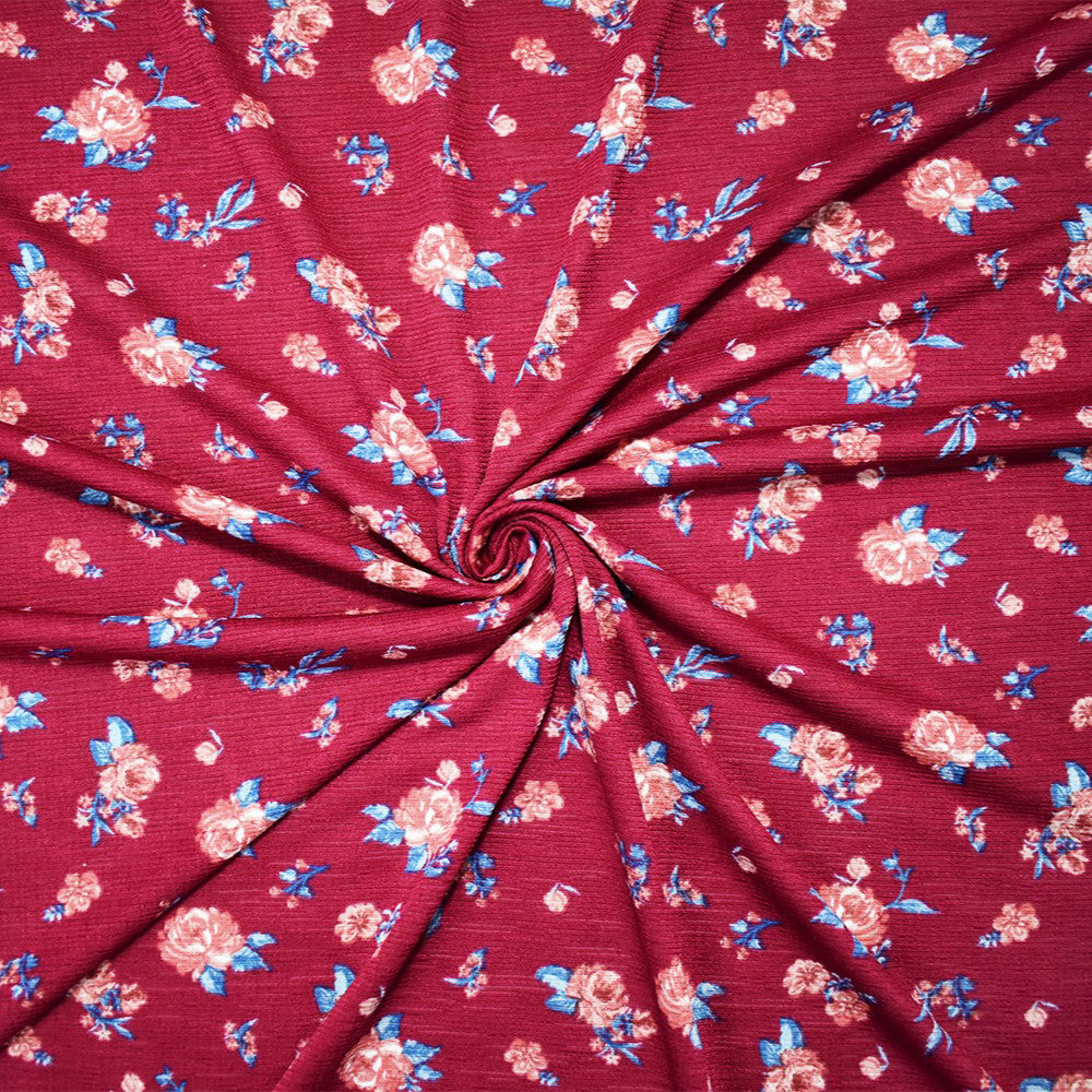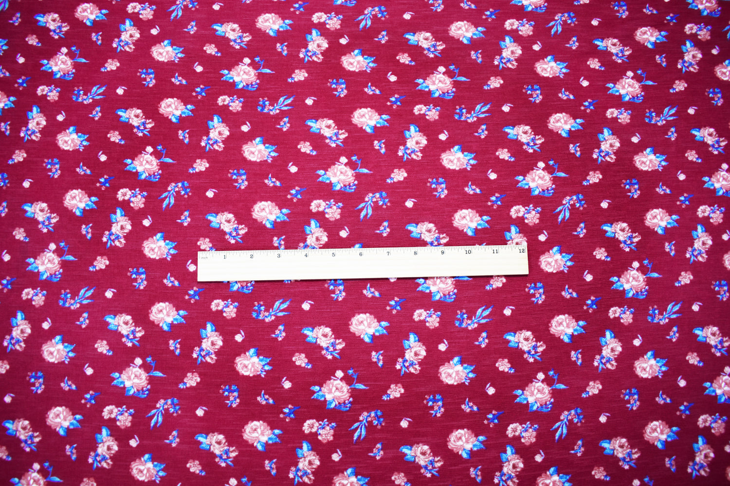 2 7/8 YD PC-Red-Blue-Multi Poly Stretch Spandex Floral Printed Slub Knit Fabric