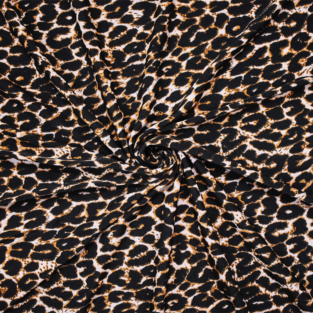 Black-Brown-Beige Polyester Cheetah Printed Matte Jersey Knit Fabric