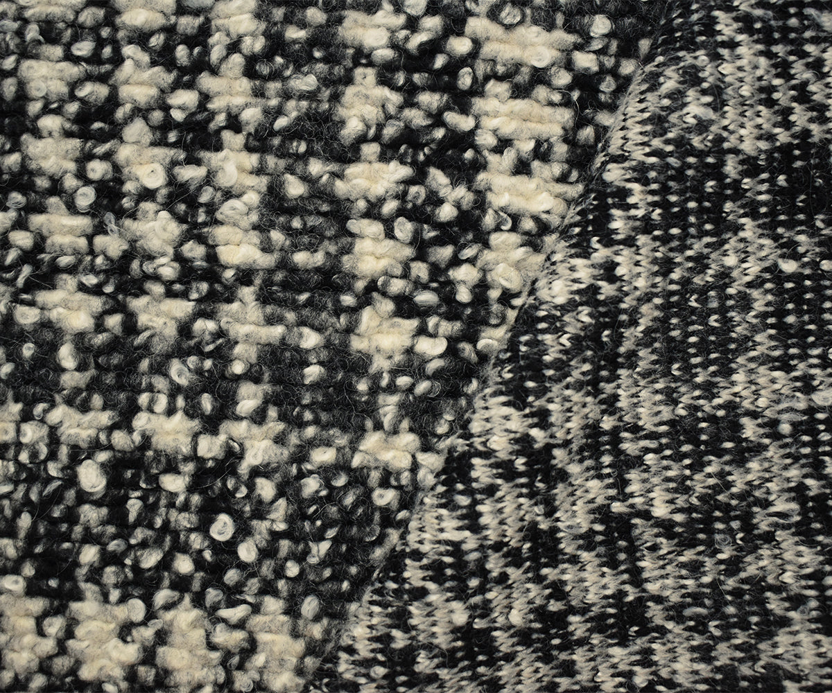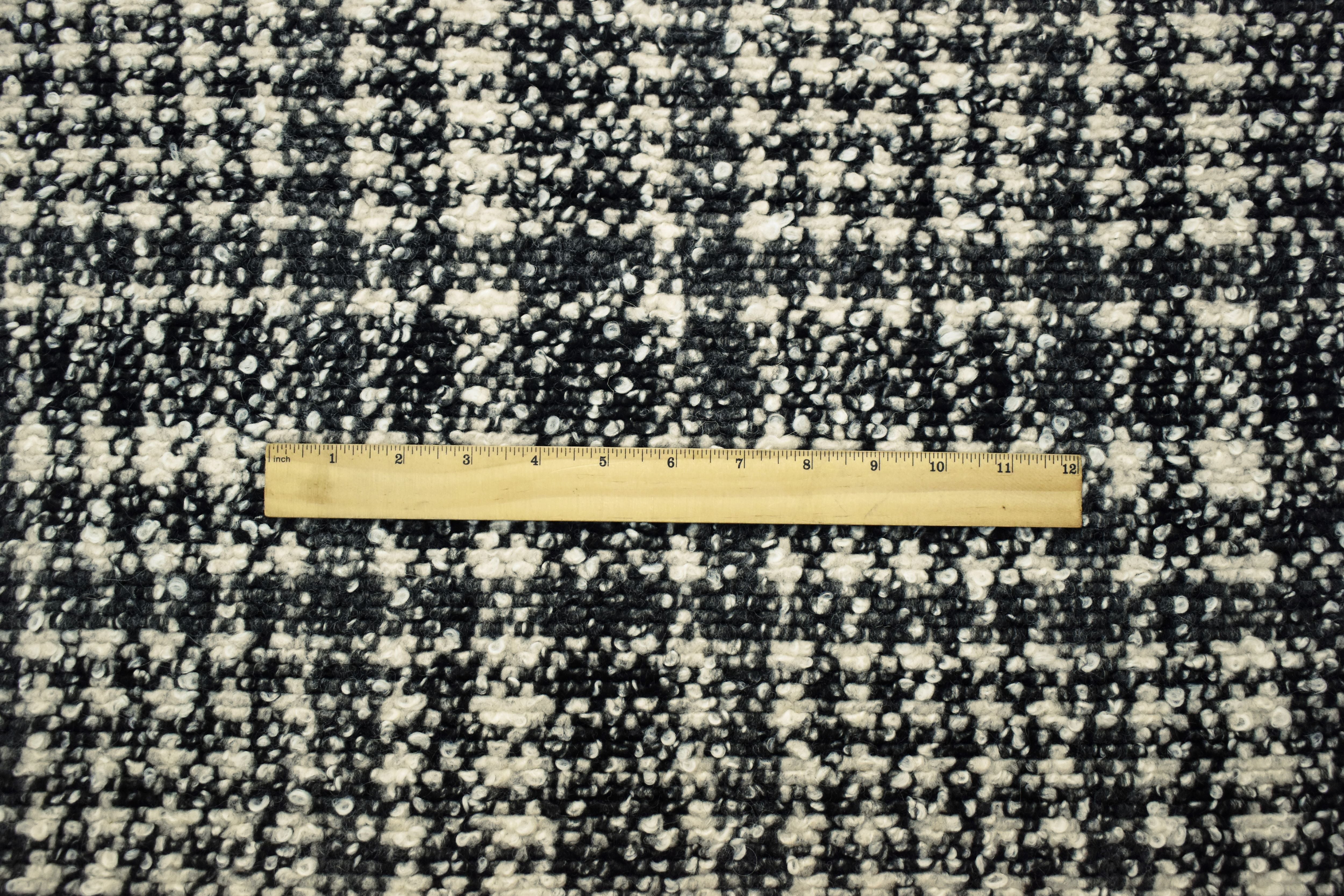 Black-Multi Boiled Italian Wool-Poly Abstract Plaid Boucle Knit Coating Fabric