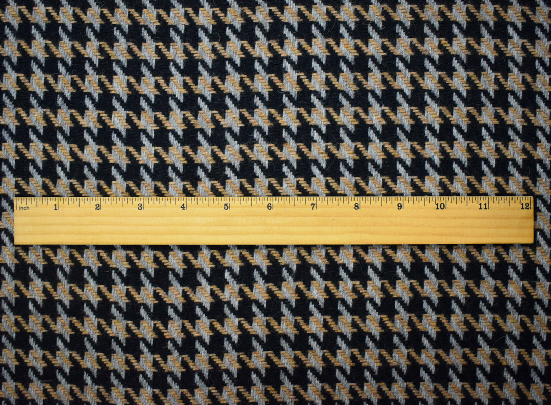 Black-Multi Wool Poly Houndstooth Twill Woven Jacketing Fabric