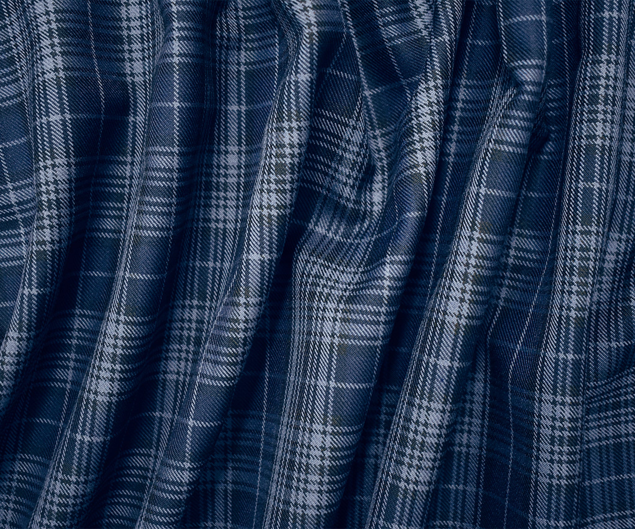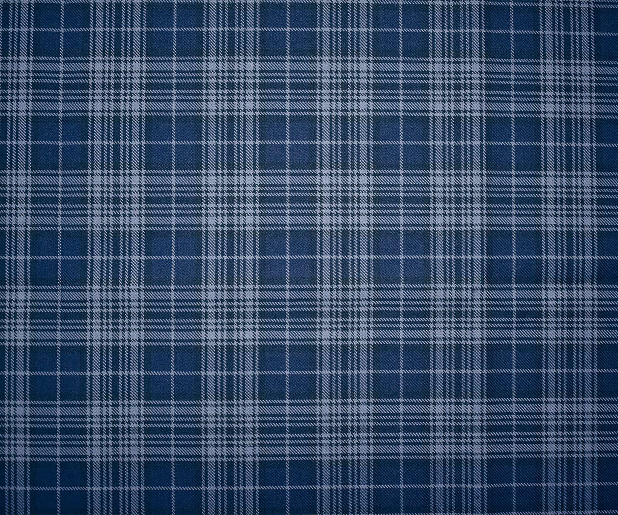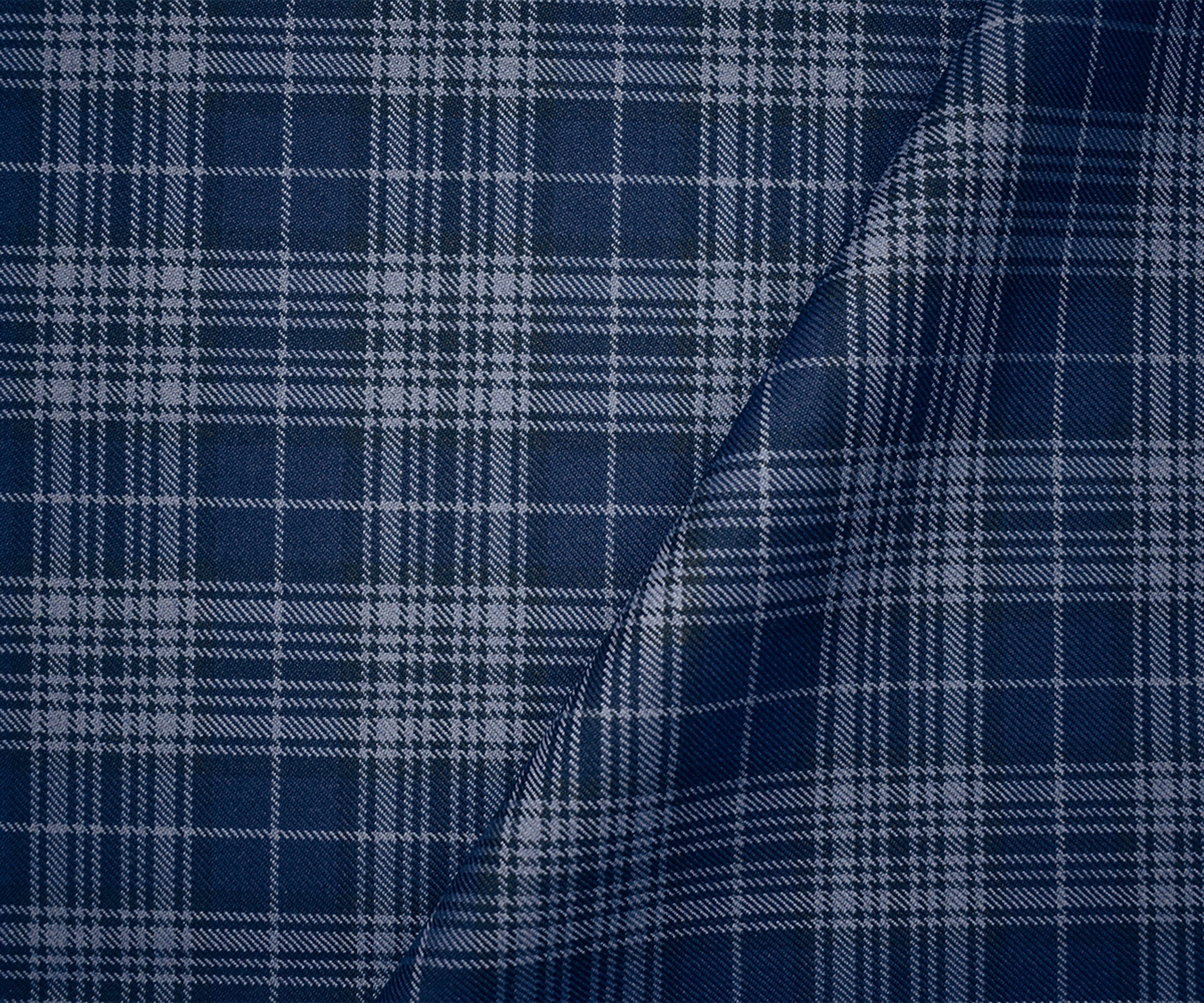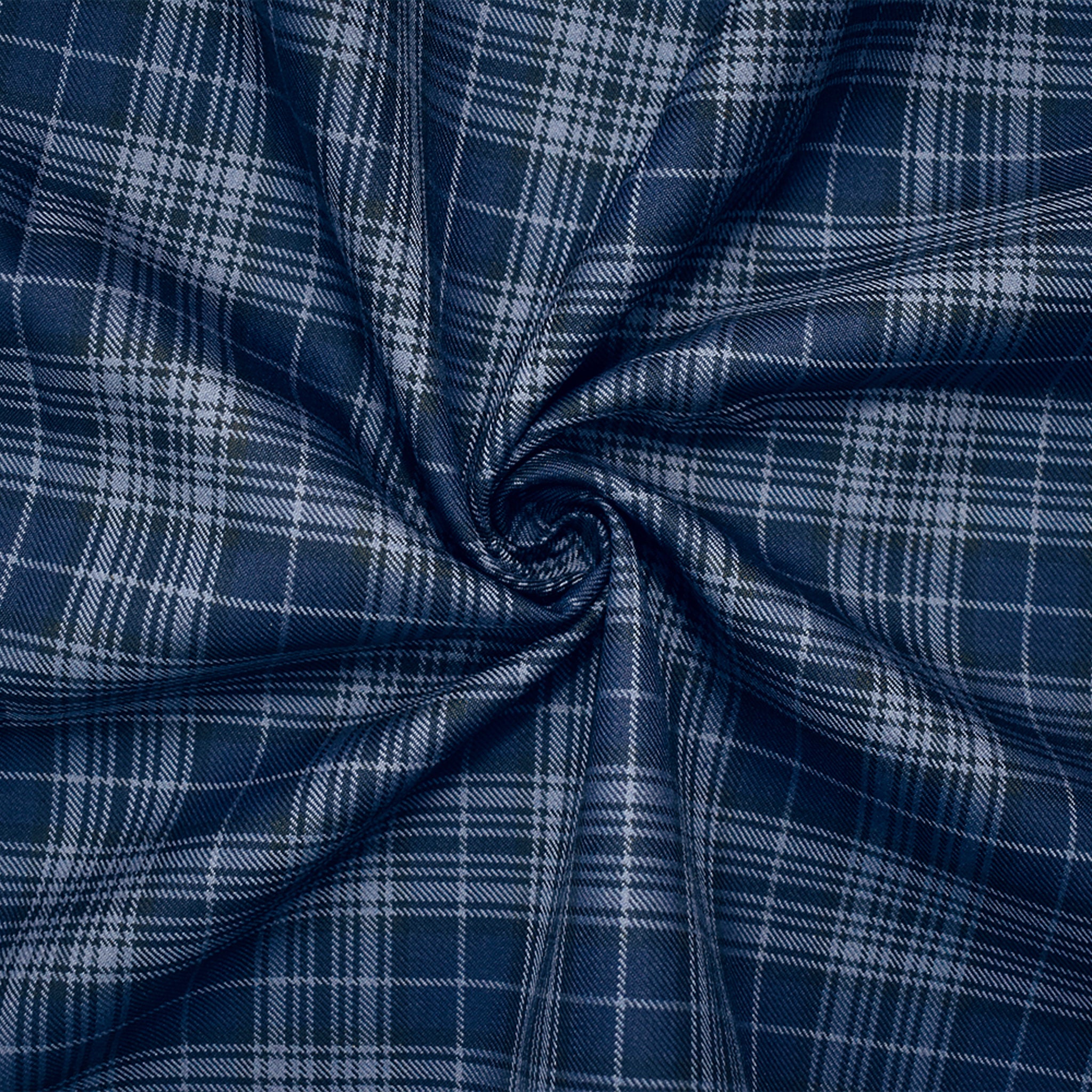 Blue-Black Wool-Polyester Plaid Woven Twill Suiting Fabric