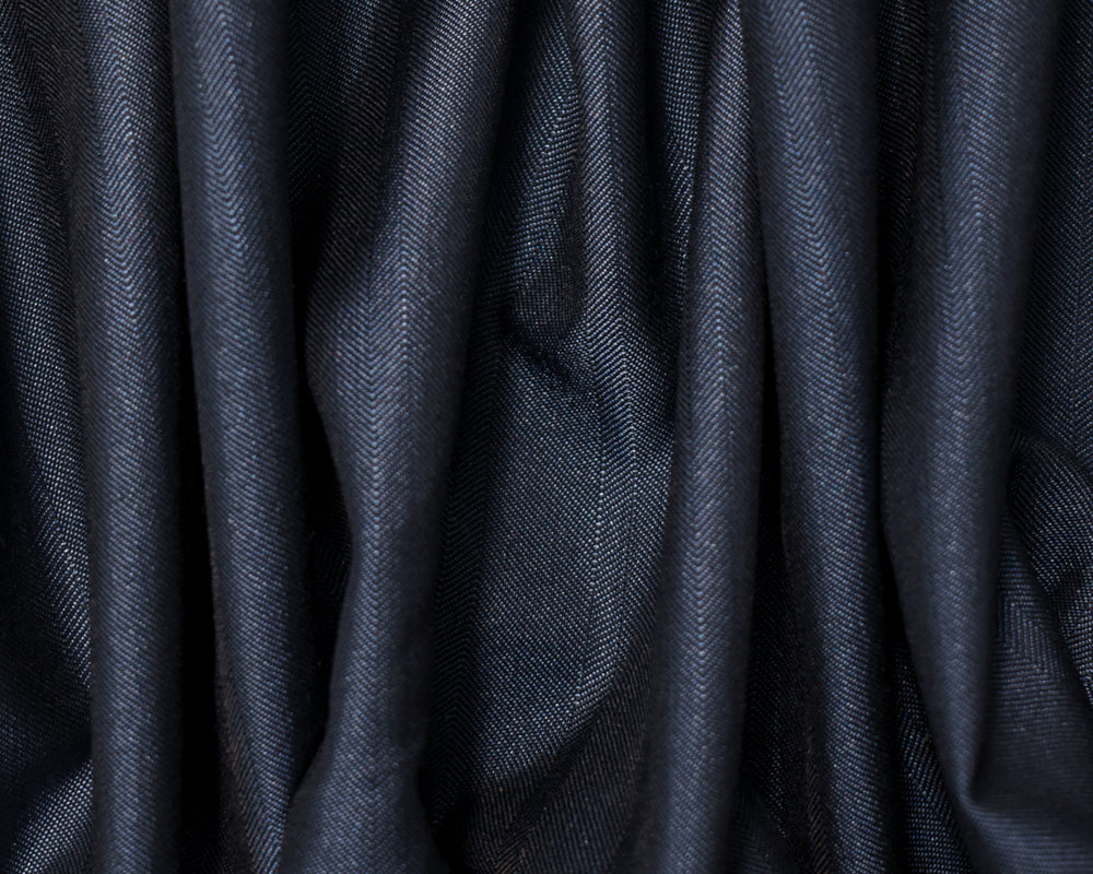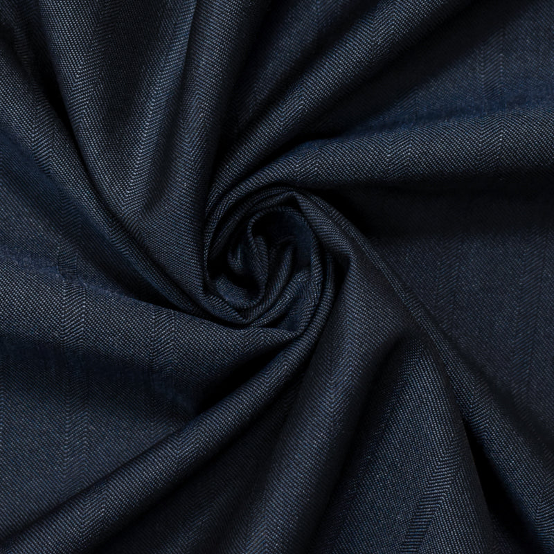 Blue Wool Poly Herringbone Twill Woven Shirting Fabric