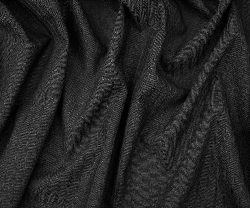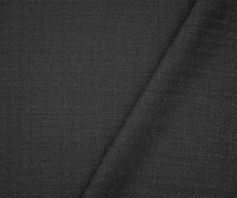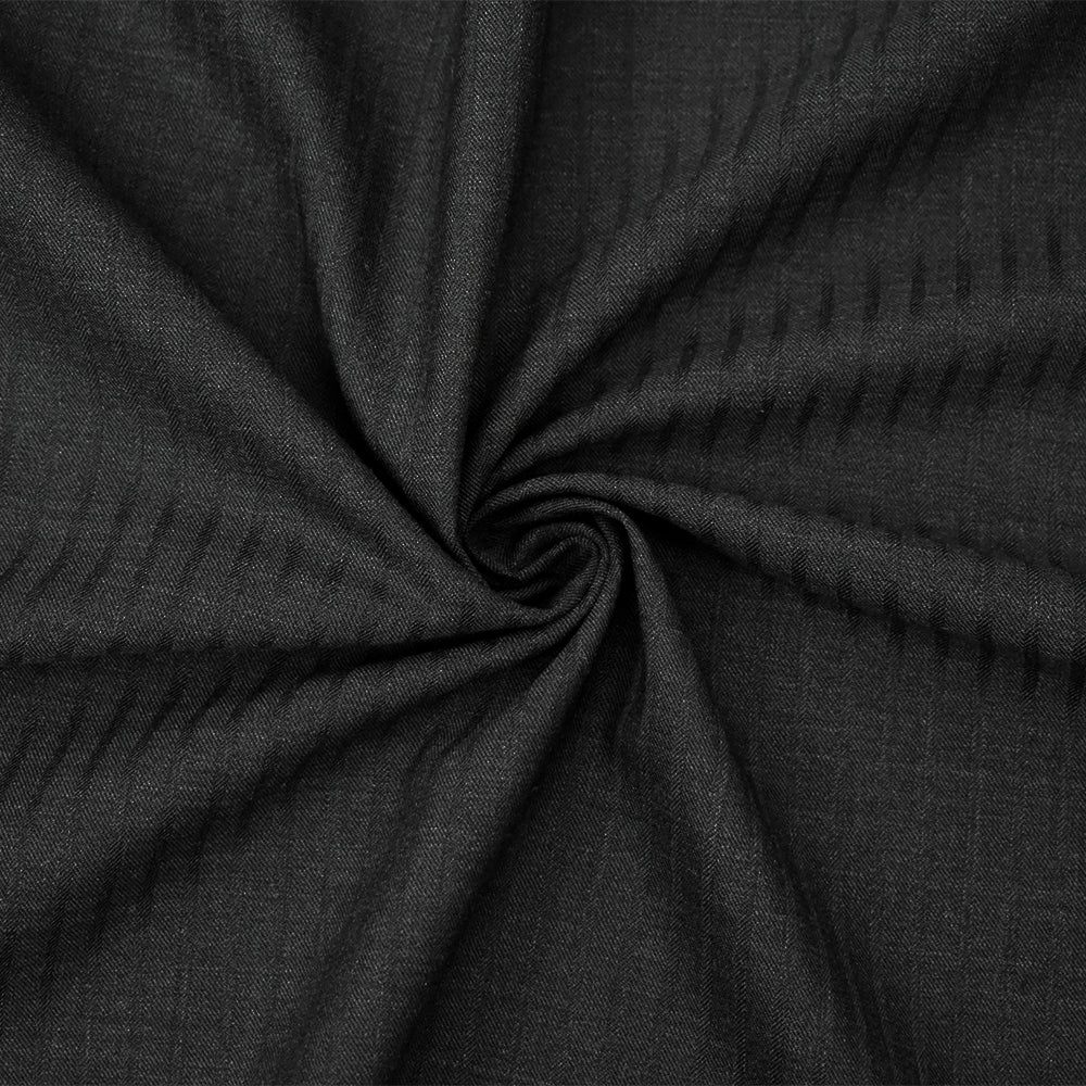 Deep Gray Wool-Poly Striped Woven Irregular Herringbone Suiting Fabric