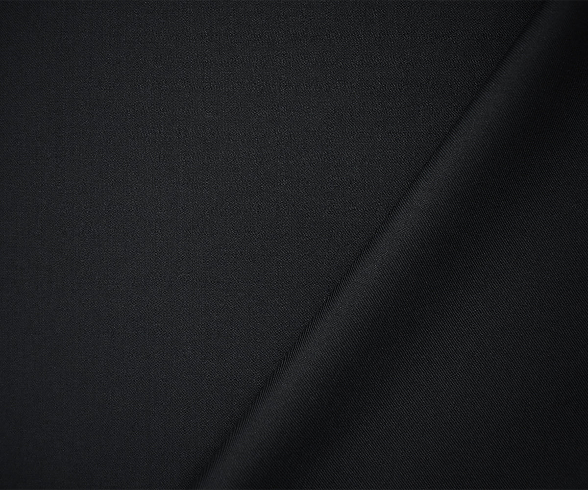 Deep Midnight Blue-Black Wool Poly Solid Twill Woven Suiting Fabric