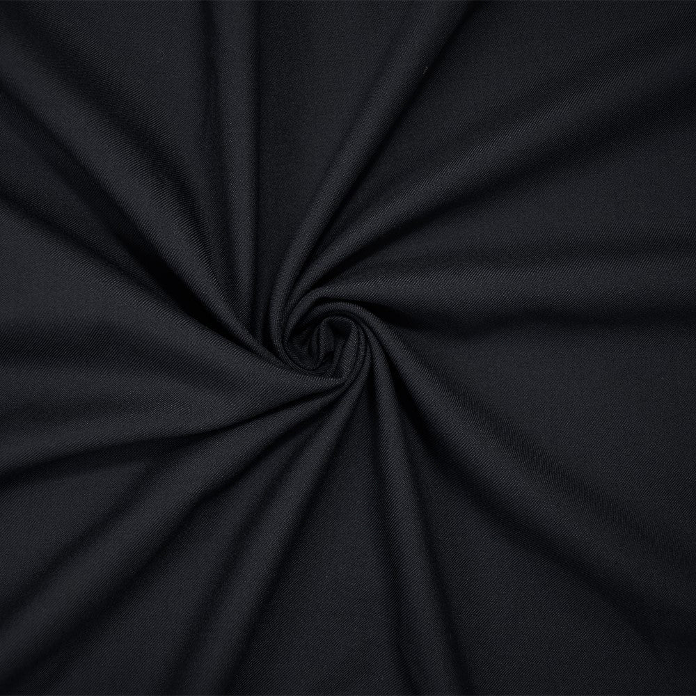 Deep Midnight Blue Wool Cotton Solid Twill Woven Suiting Fabric