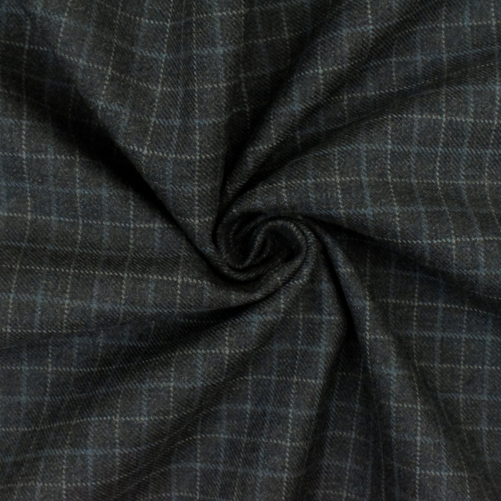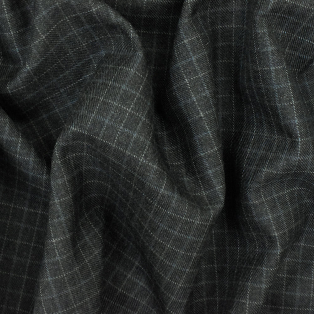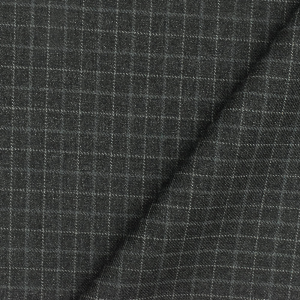 -Check wool-poly twill woven suiting fabric, made in Japan