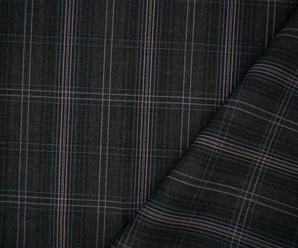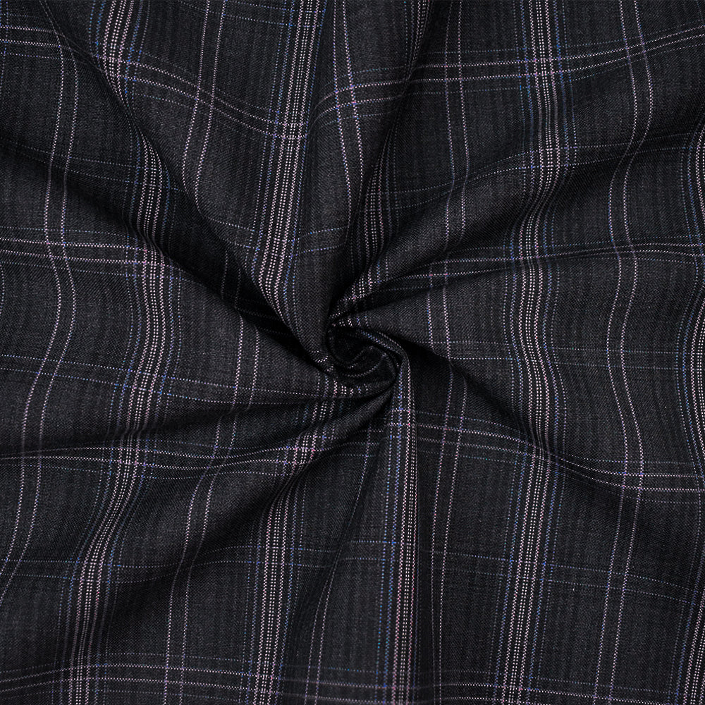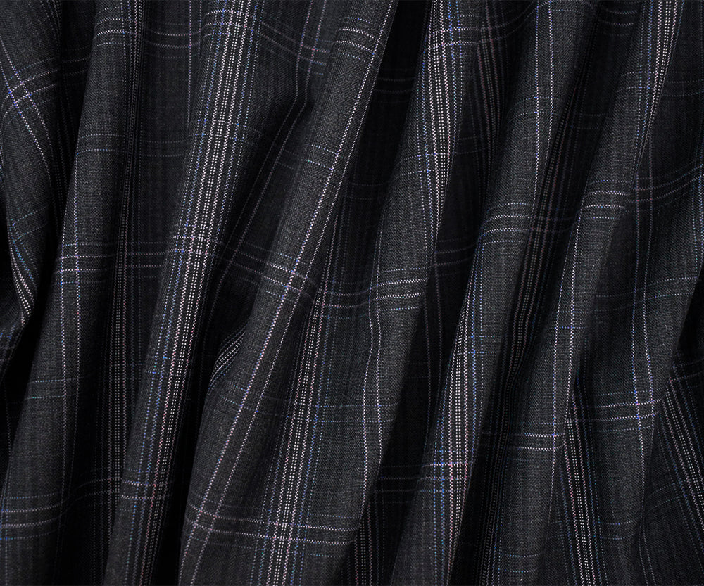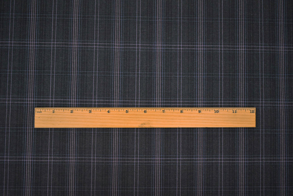 Gray-Purple-Multi Wool-Poly Plaid Woven Shirting Fabric