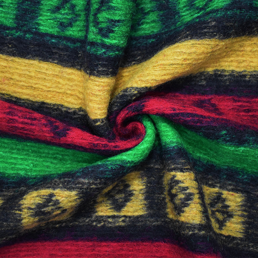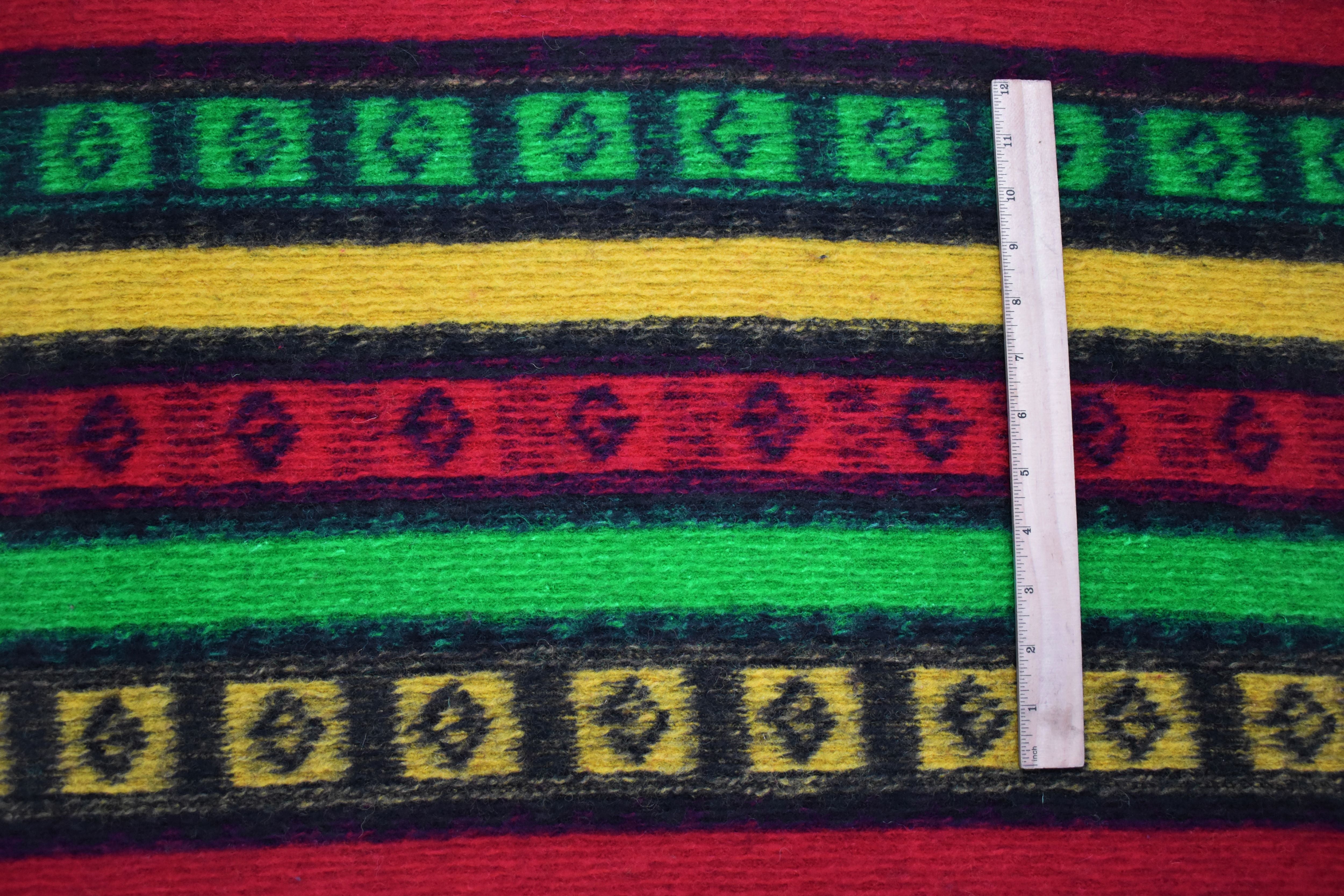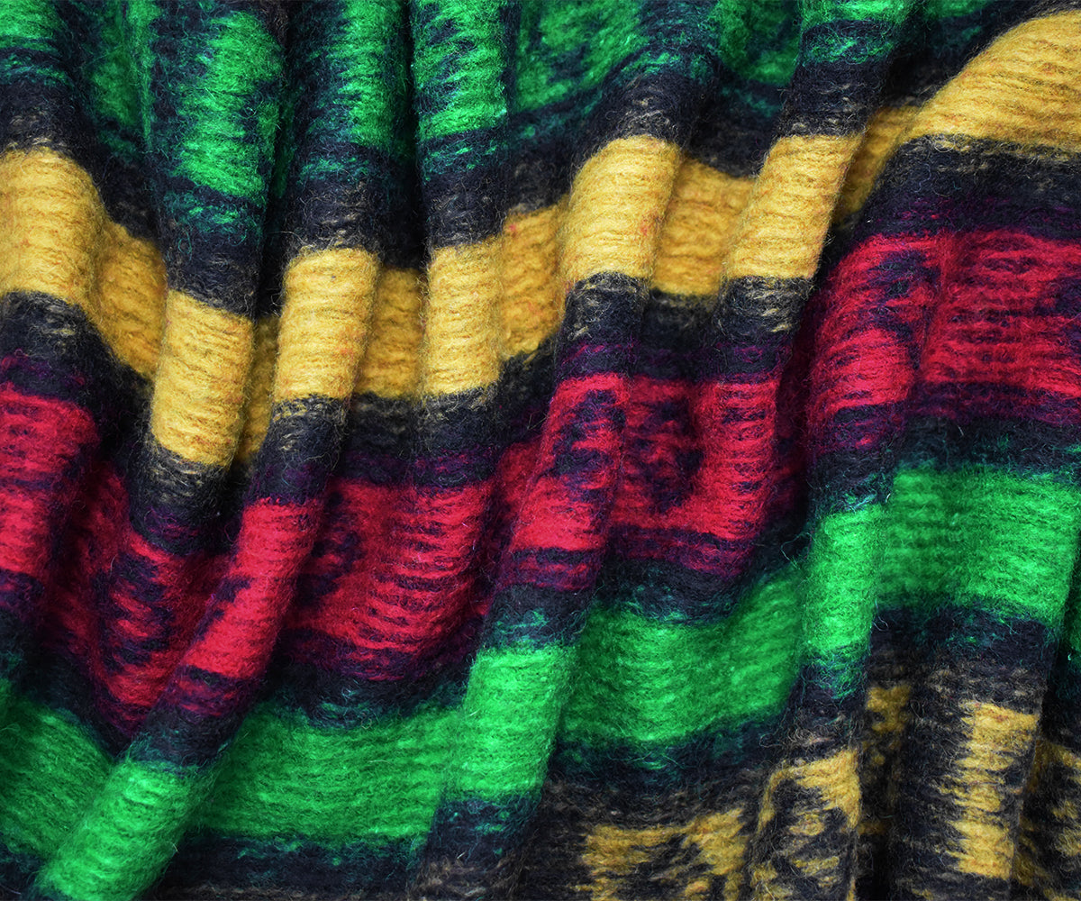 Red-Green-Multi Italian Boiled Wool-Poly Aztec Stripe Knit Coating Fabric