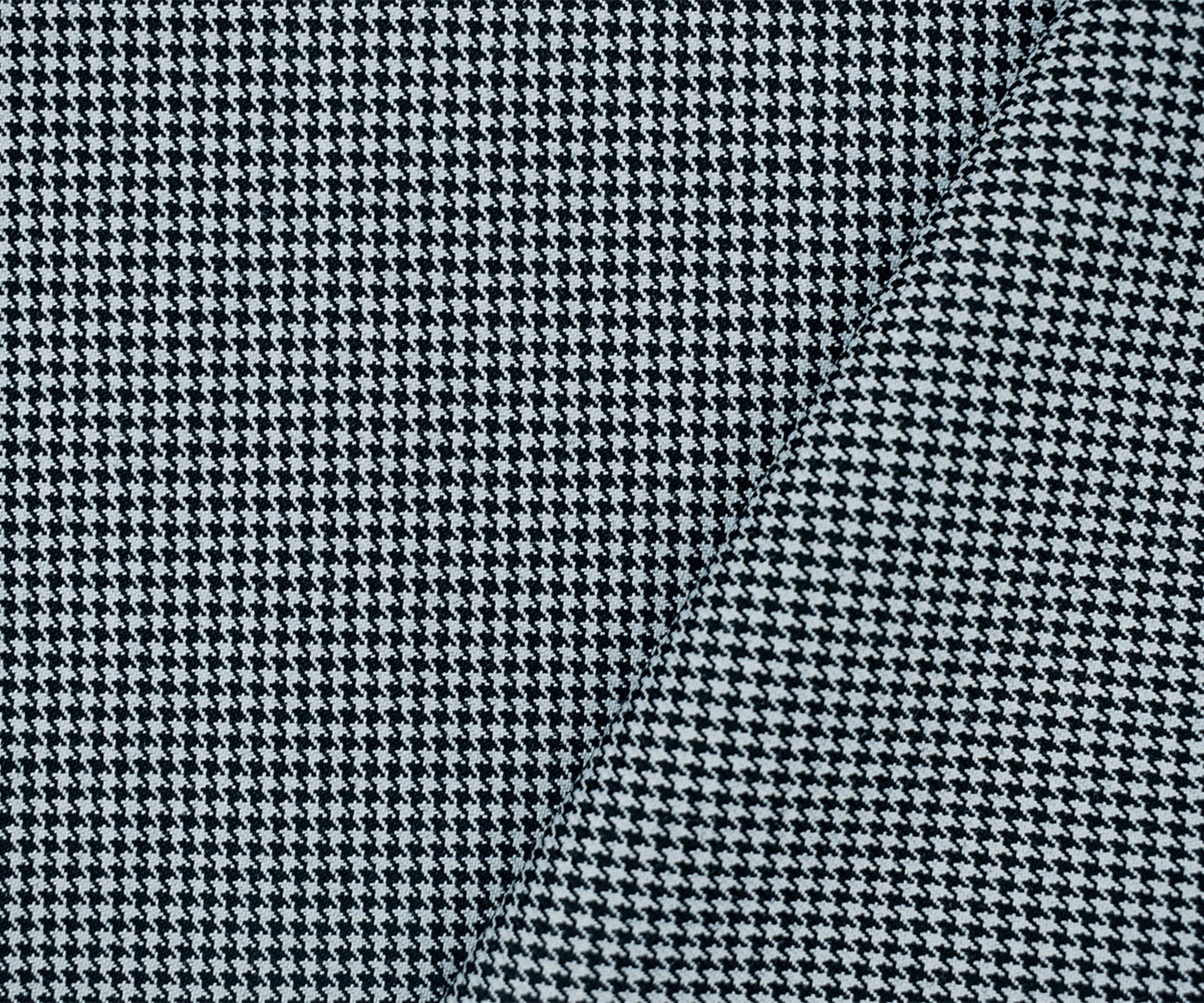 Black-Light Blue Wool-Polyester Houndstooth Woven Suiting Fabric