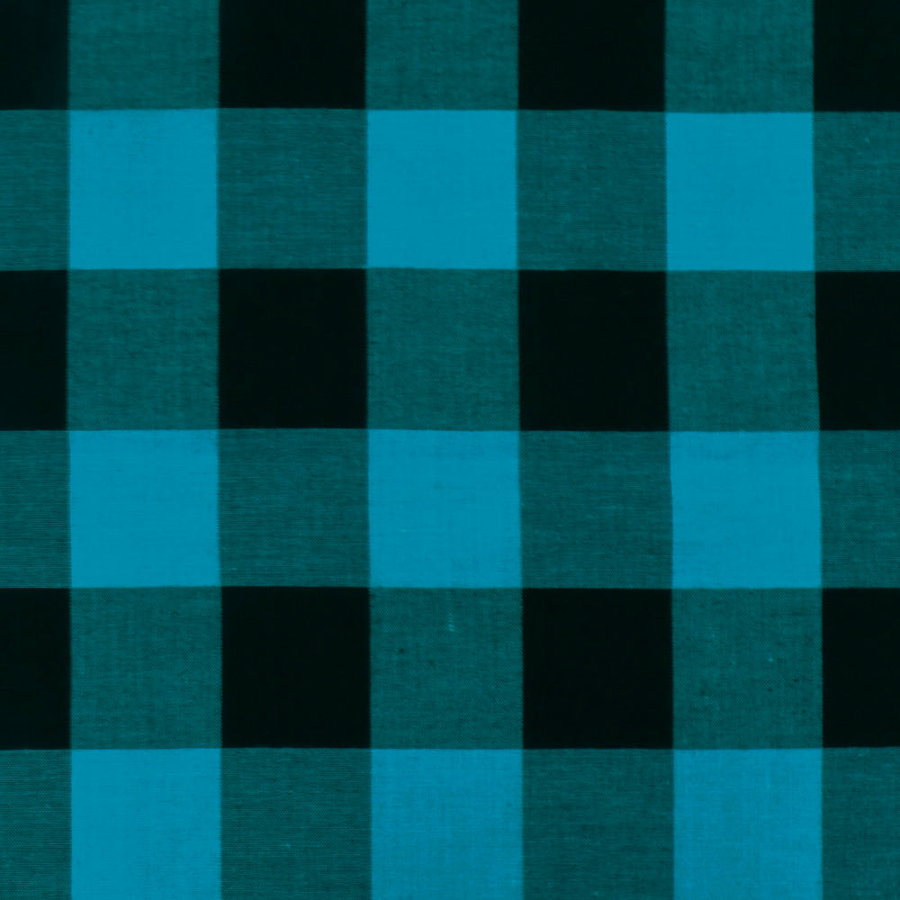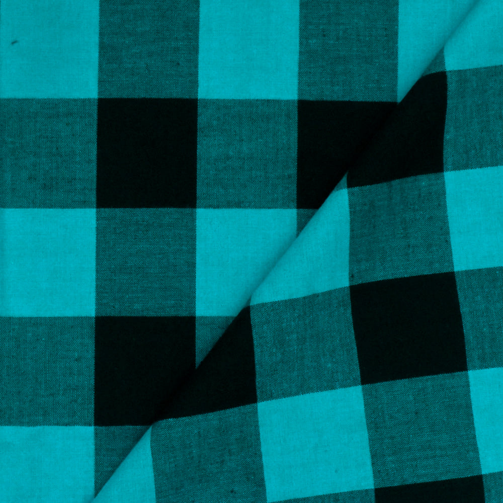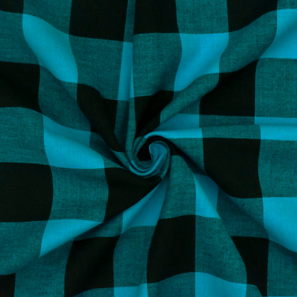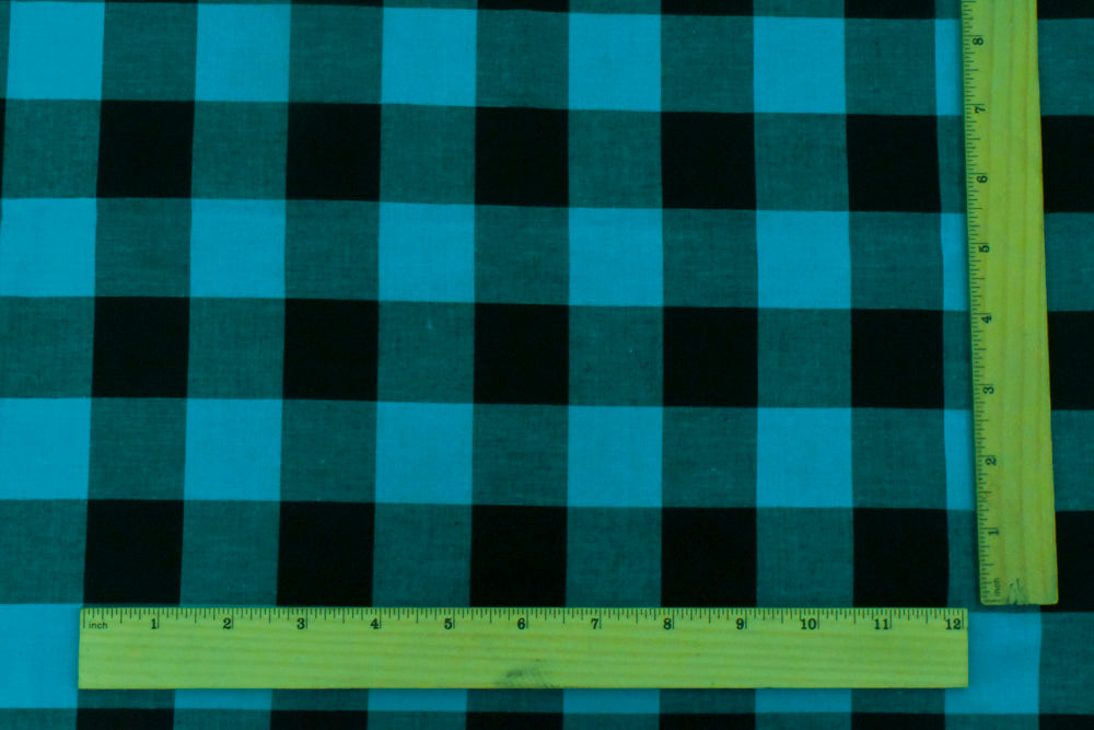 Bright Teal-Black Gingham Stretch Cotton Woven Fabric
