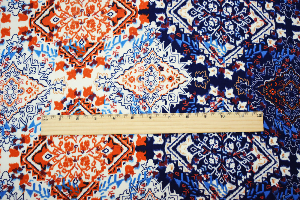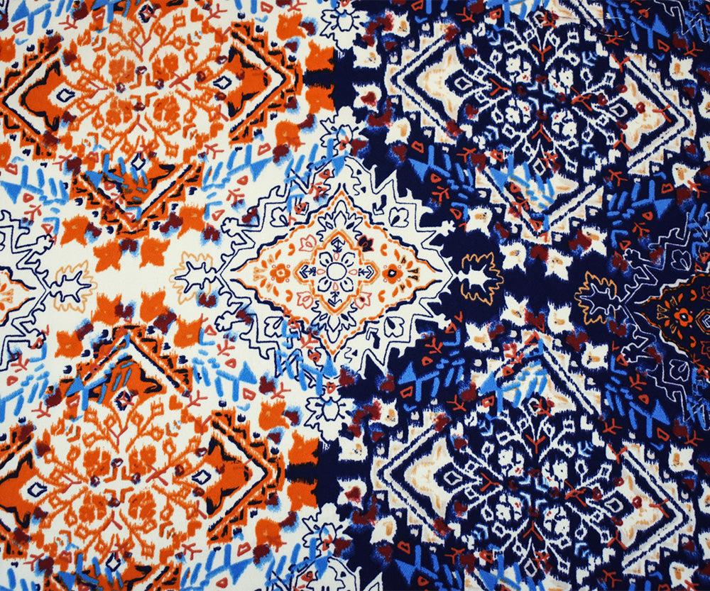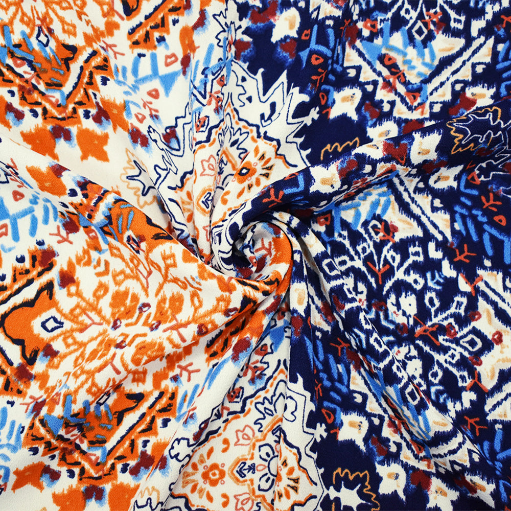 Deep Blue-Orange-Multi Aztec Printed Momie Crepe Georgette Woven Fabric