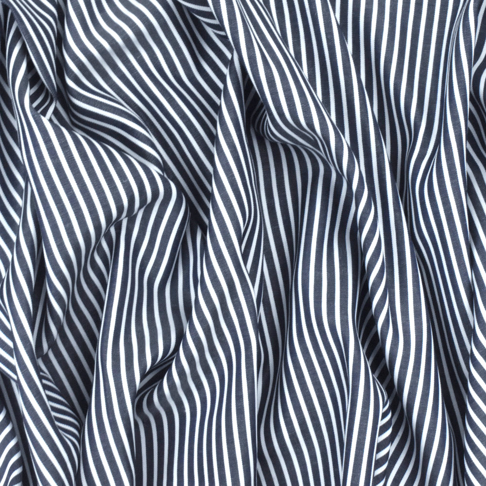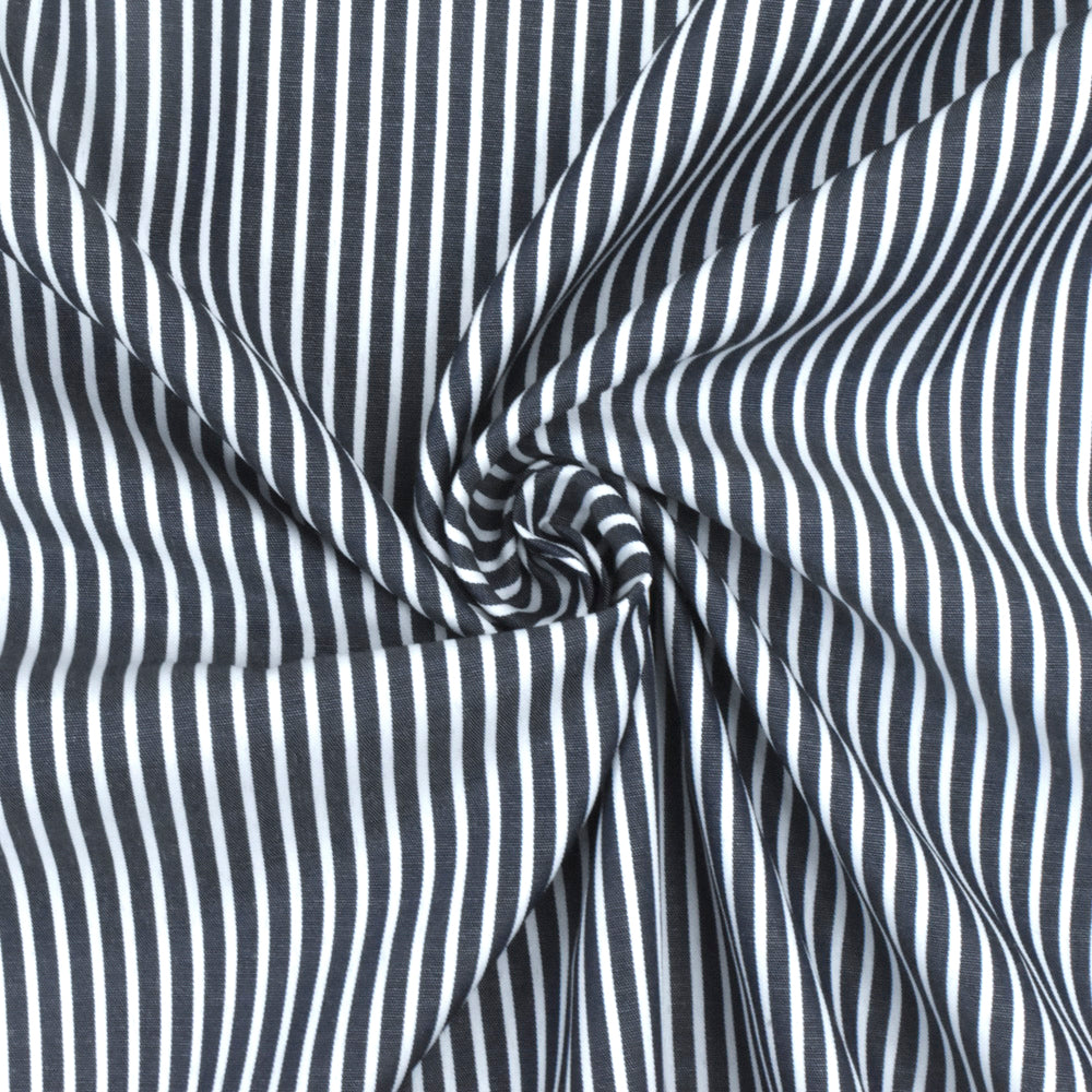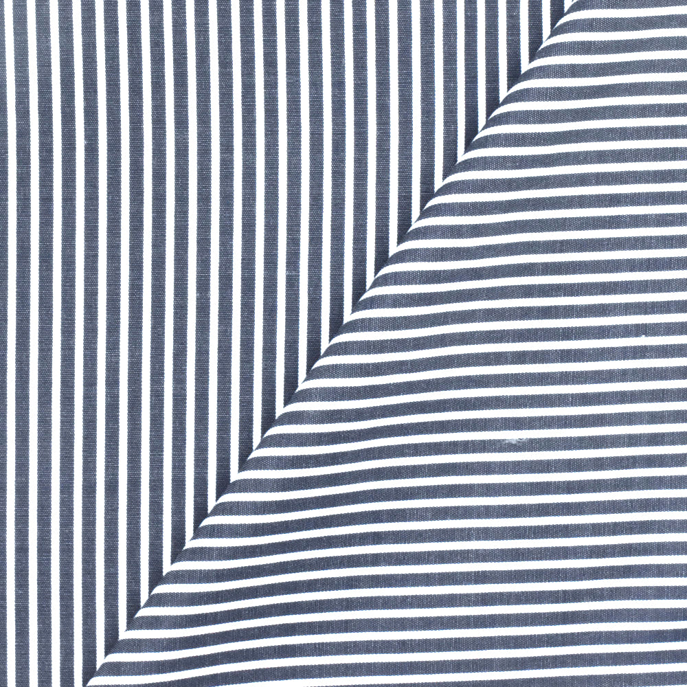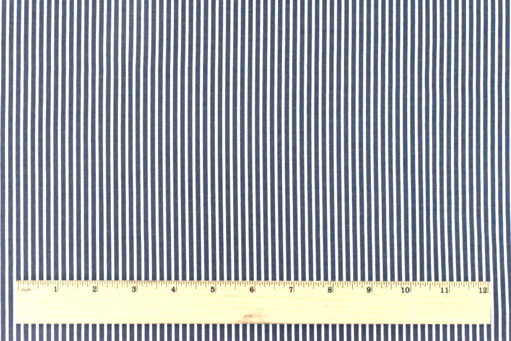 Deep Blue-White Stripe Polyester Shirting Woven Fabric