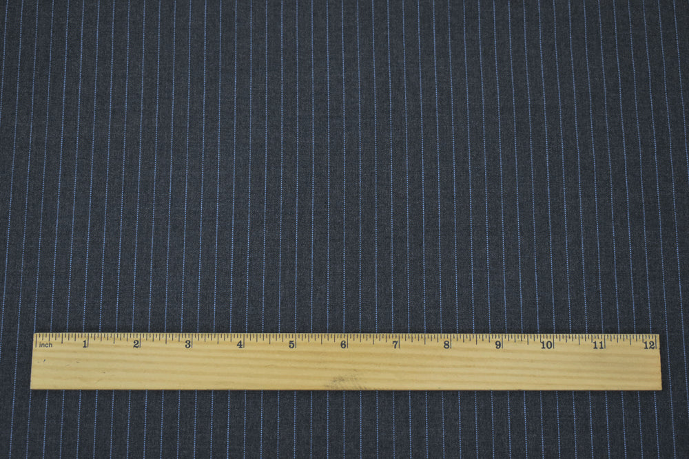 Gray-Black-Blue Poly-Wool Pinstripe Woven Shirting Fabric