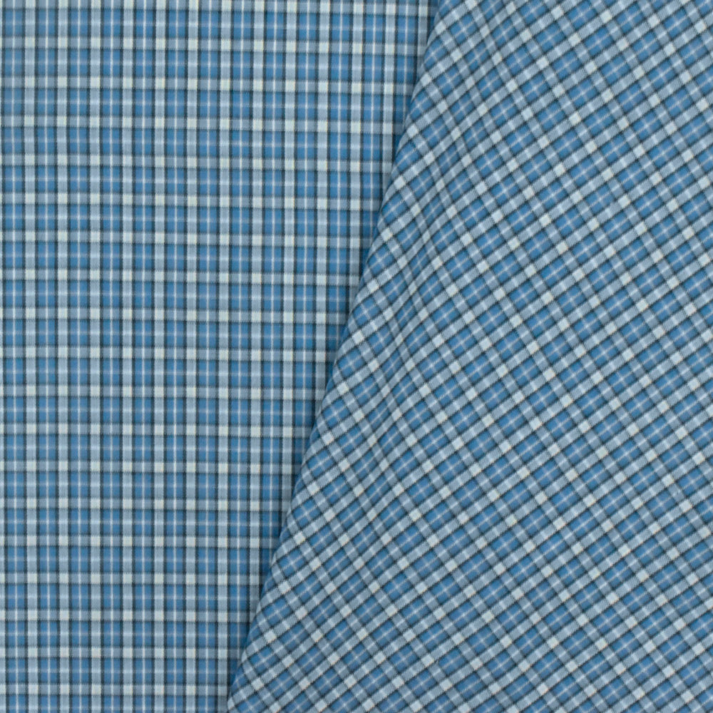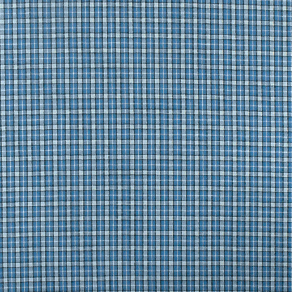 Ocean Blue-White-Multi Plaid Cotton Polyester Madras Woven Fabric