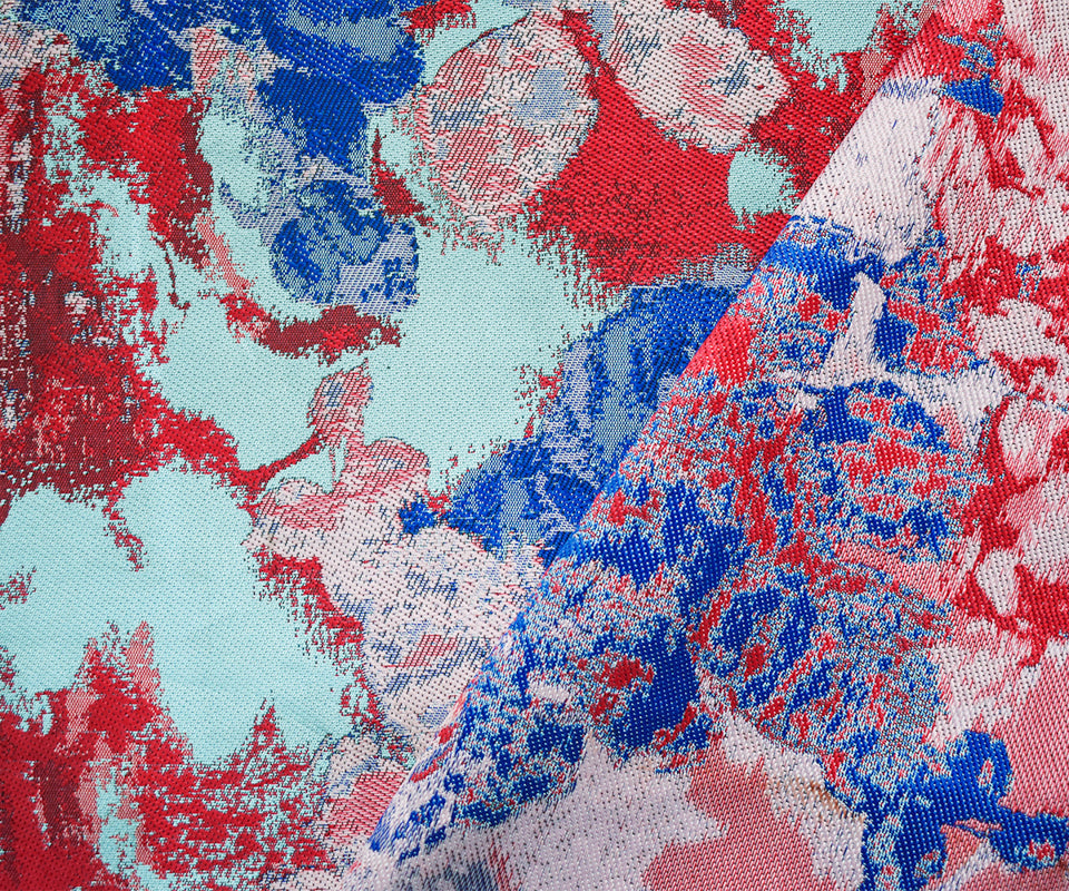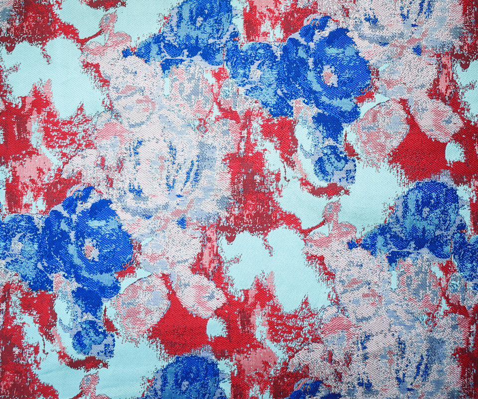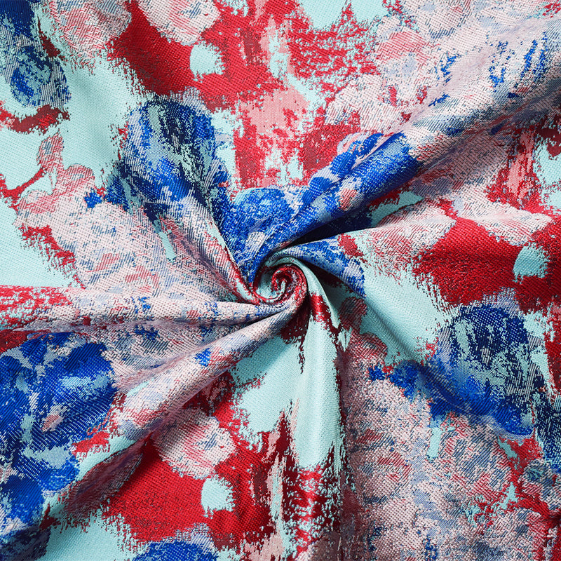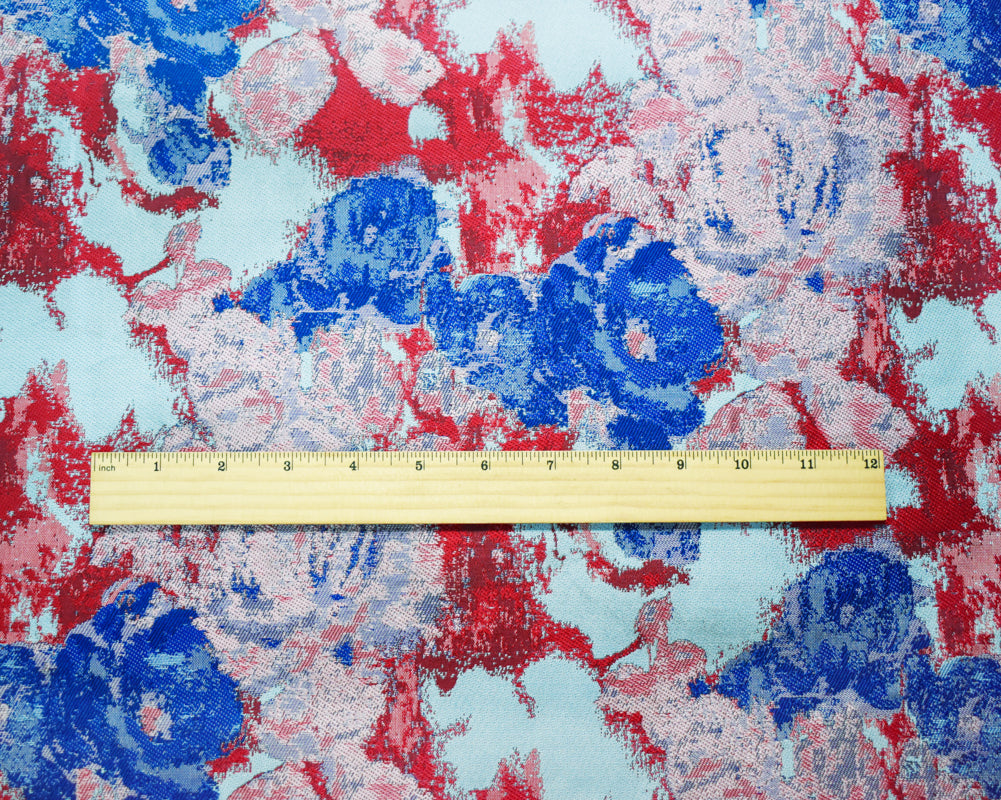 Red-Blue-Multi Polyester Abstract Floral Jacquard Woven Fabric