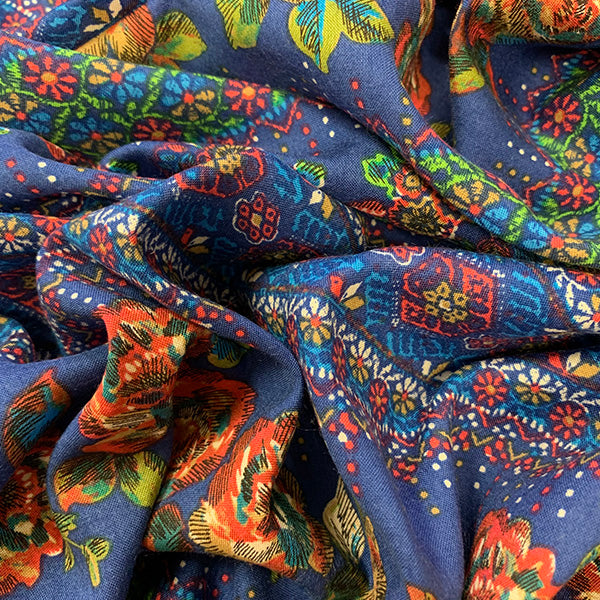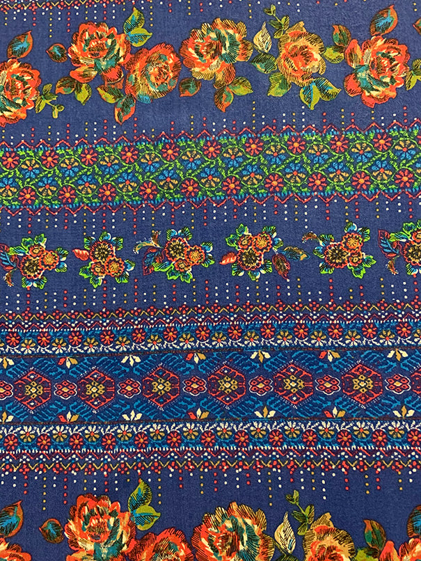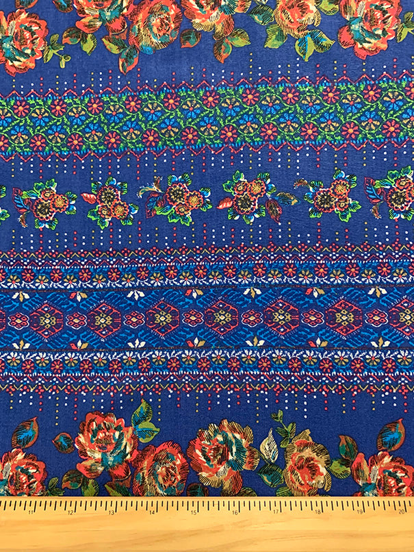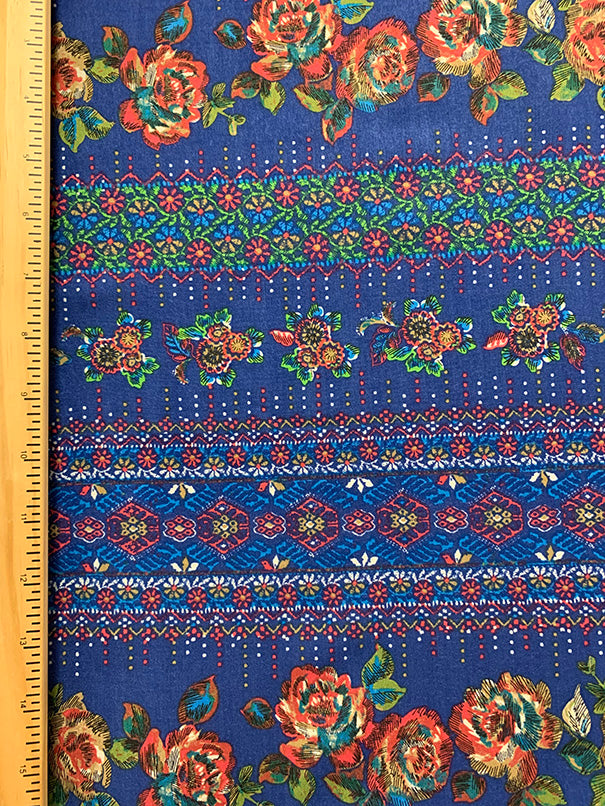1 1/2 YD PC-Blue Multi Floral Dot Print Rayon Challis Fabric