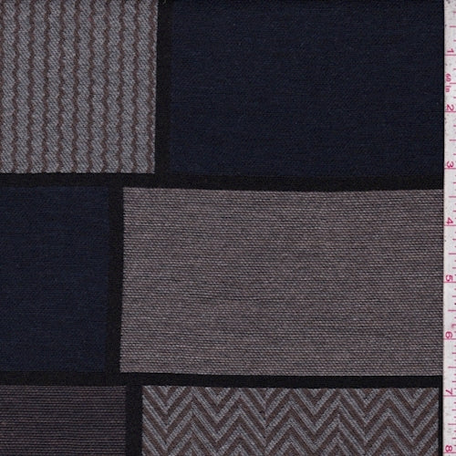 1 1/2 YD PC-Navy/Brown/Grey Patchwork Jacketing Fabric