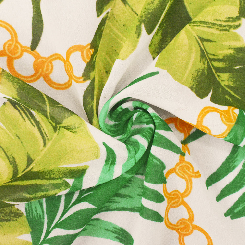 4 1/8 YD PC-White-Green-Multi Floral And Chain Printed Poly Chiffon Woven Fabric
