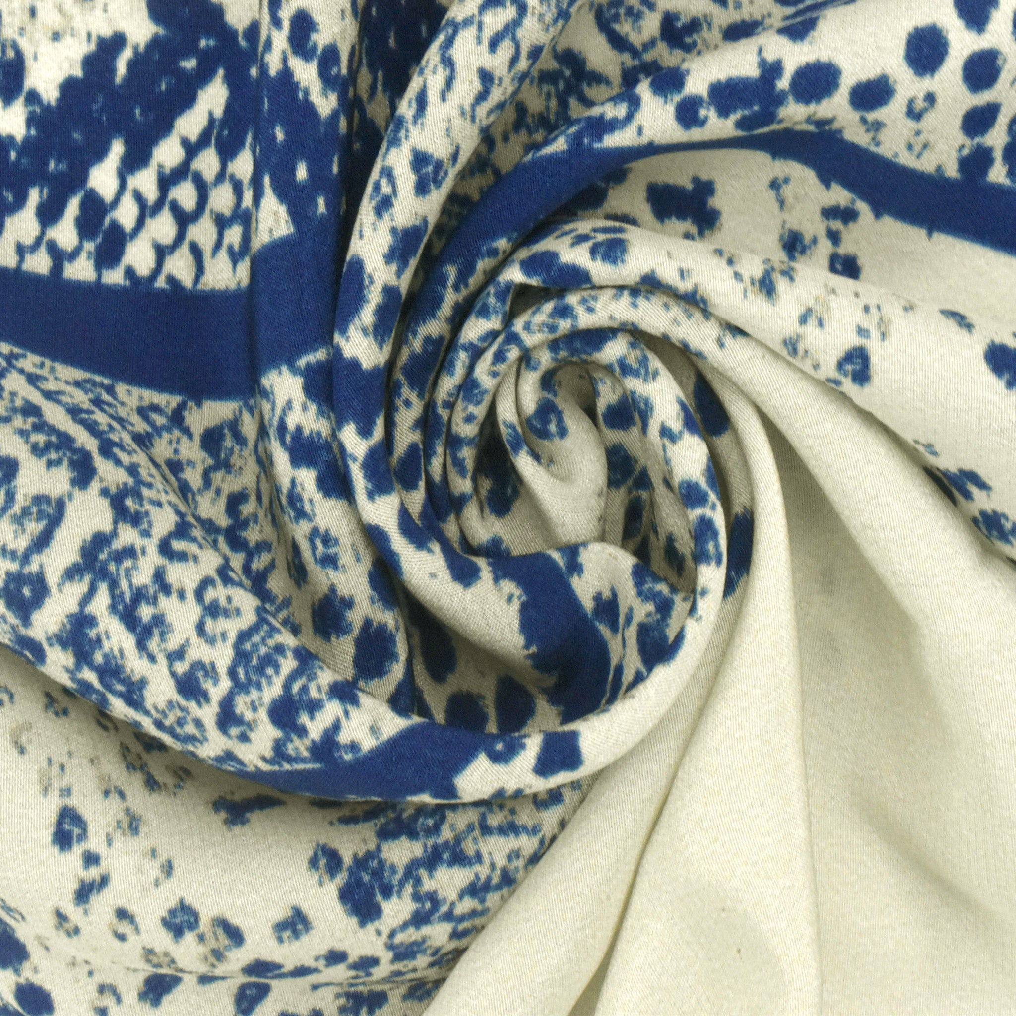Antique Ivory-Blue Snake Border Panel Printed Silk Crepe De Chine Fabric