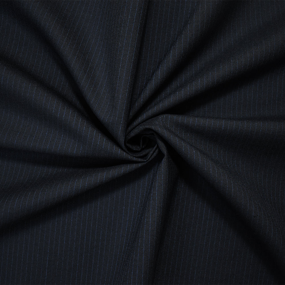 Black-Blue Wool-Polyester Japanese Vertical Stripe Shirting Woven Fabric