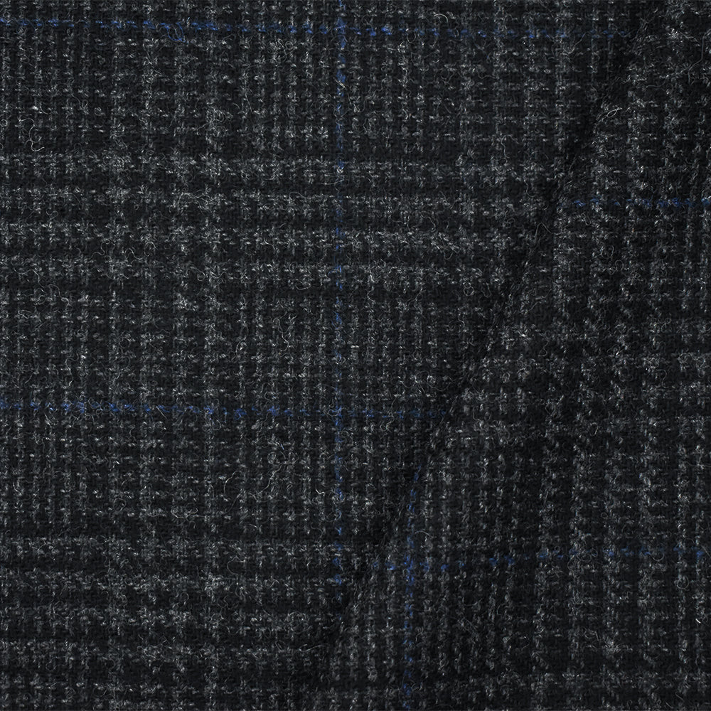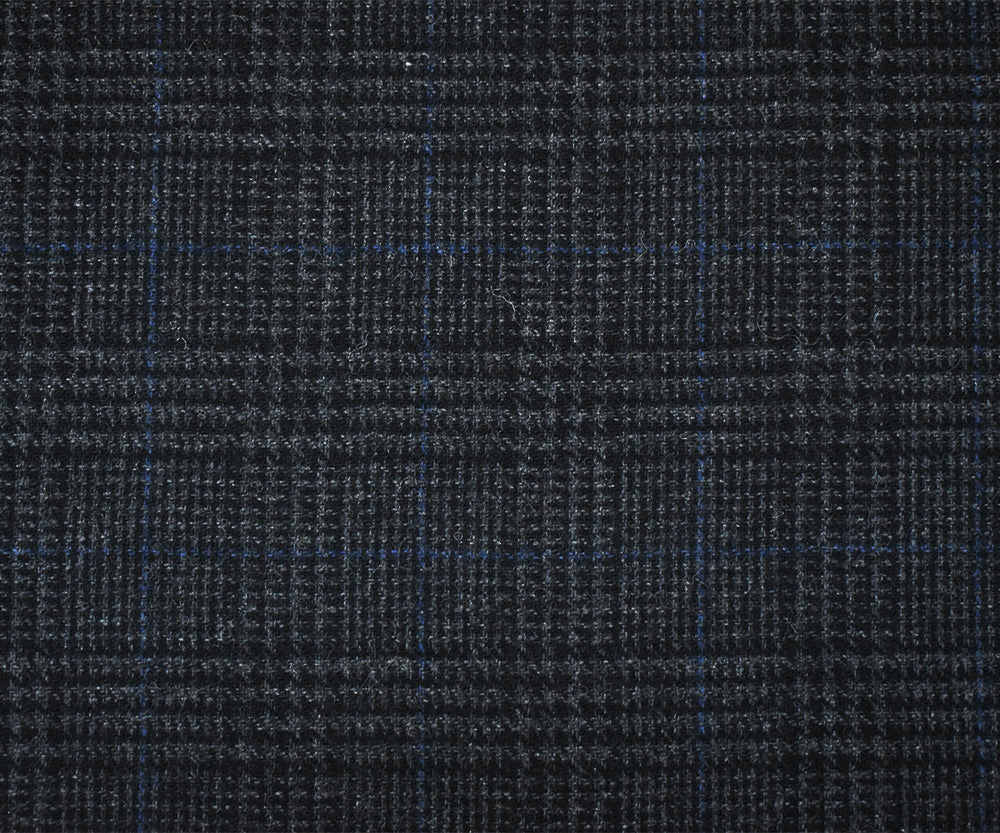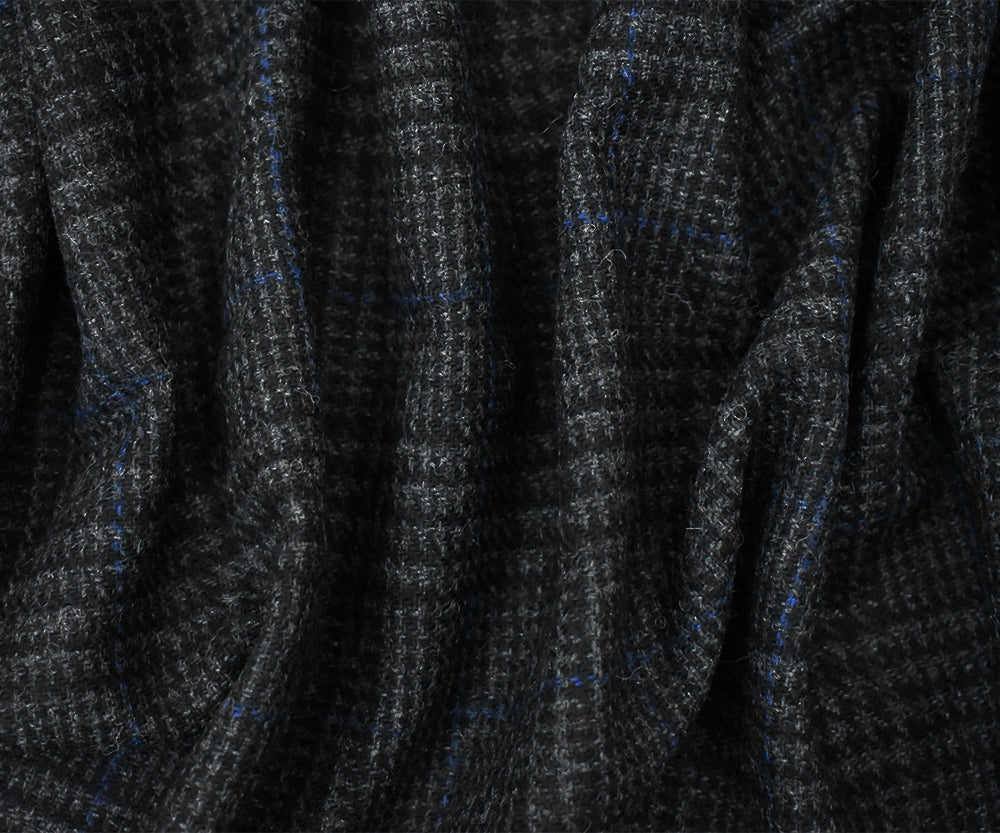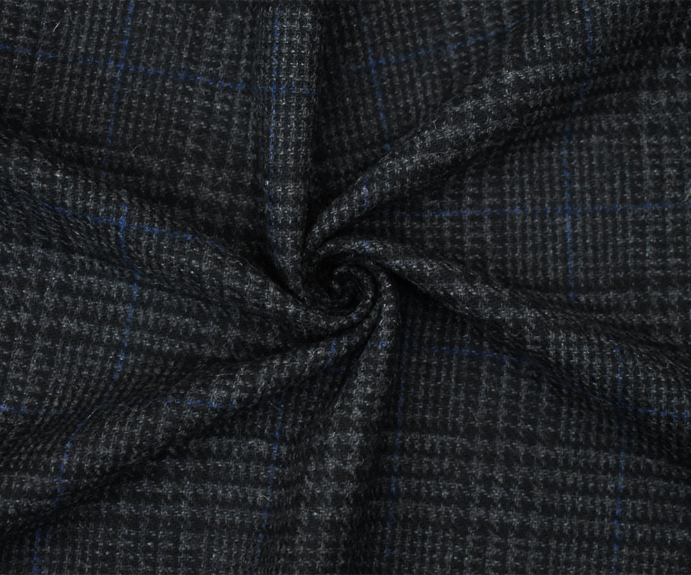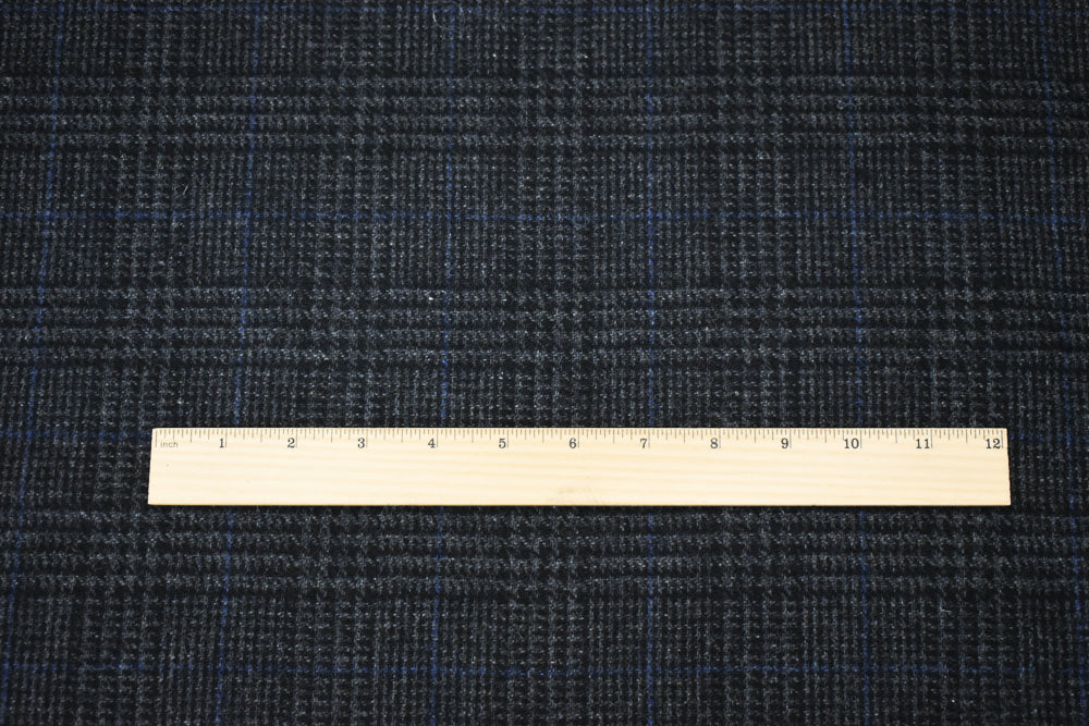 Black-Gray-Blue Wool Poly Glen Plaid Jacketing Fabric