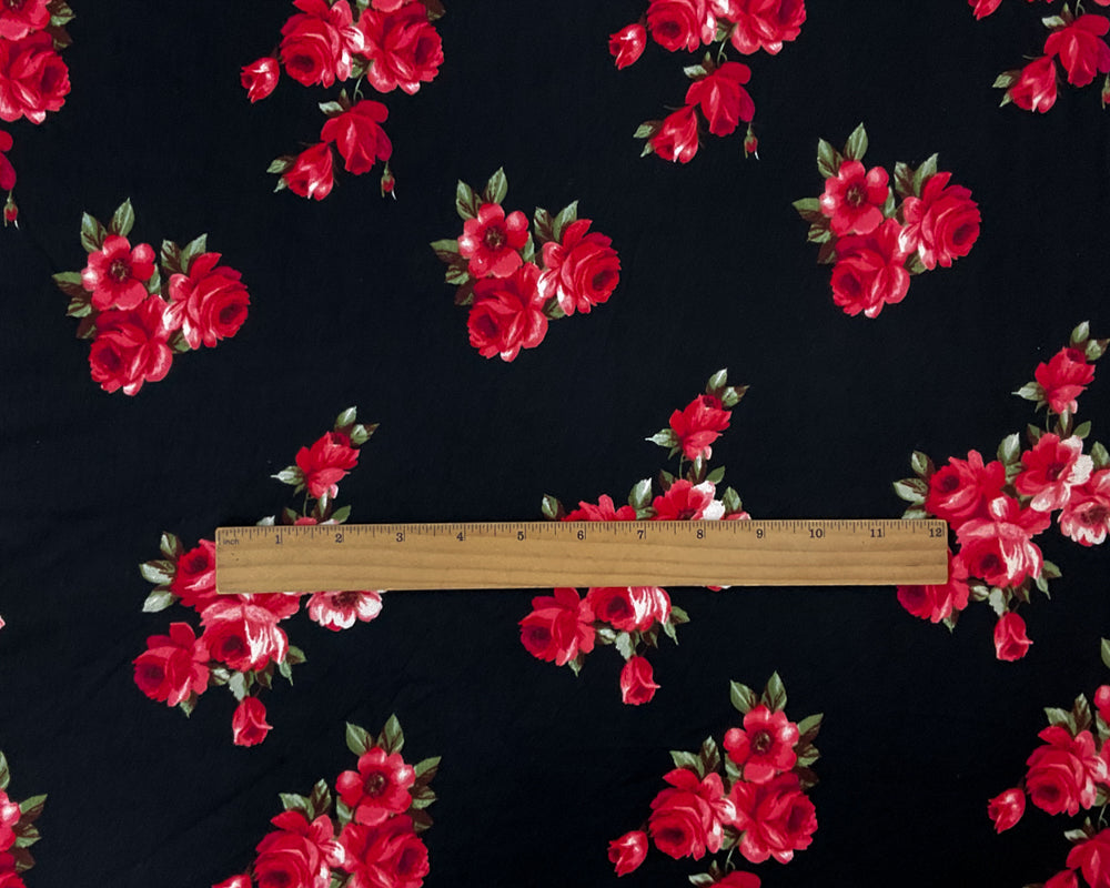 Black-Red Poly Stretch Floral Print DB Jersey Knit Fabric