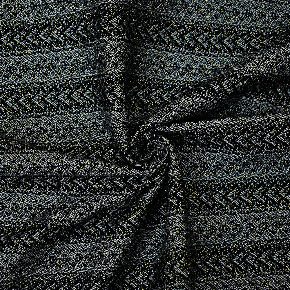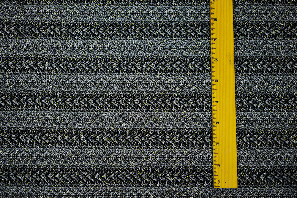 Black-White-Gold Rayon Blend Stretch Lace Stripe Bengaline Jacquard Fabric