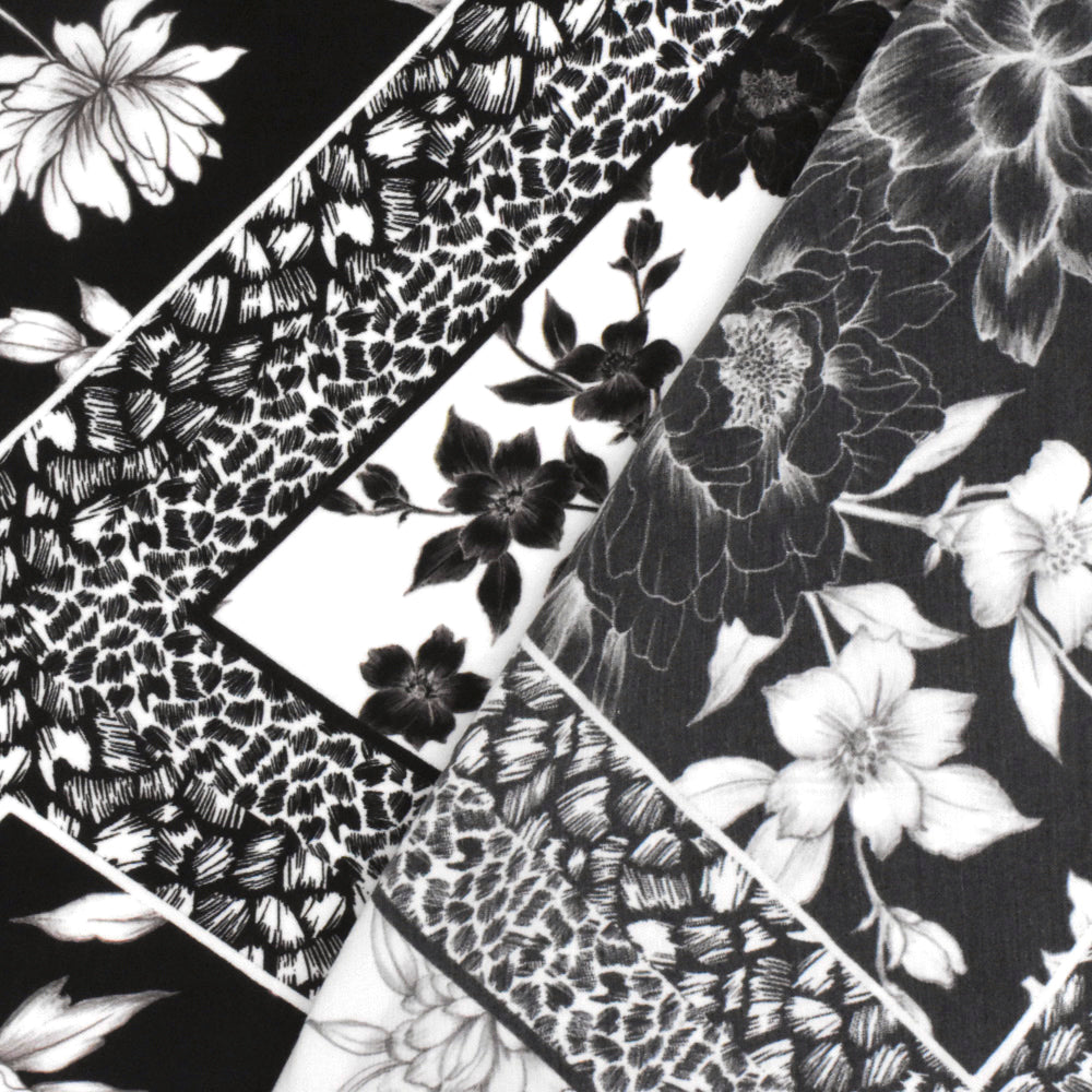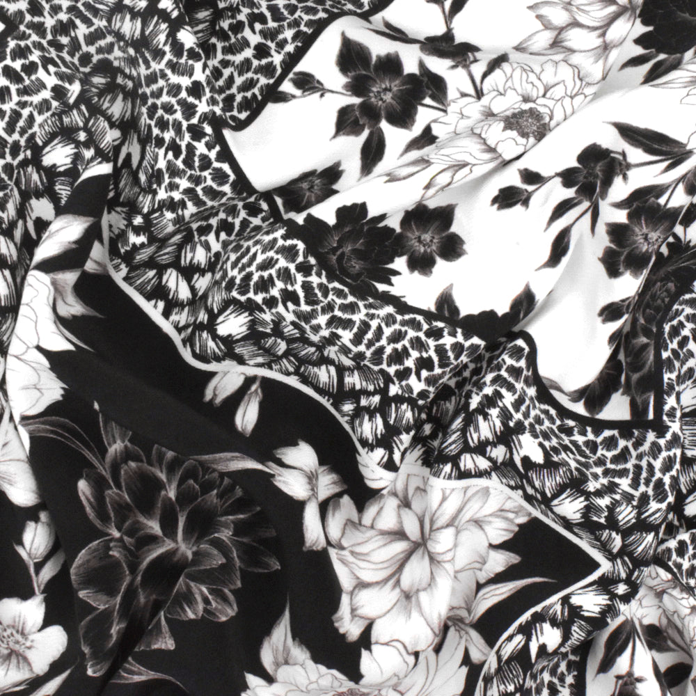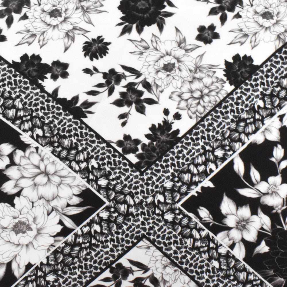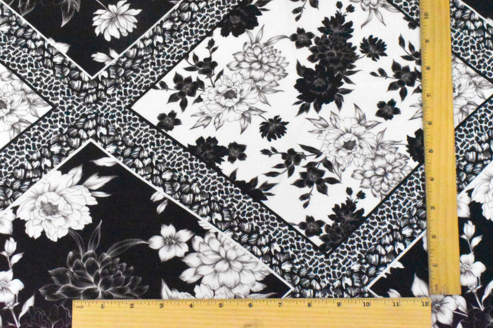 Black-White-Gray Famous Designer Floral Tile Printed Faille Woven Fabric