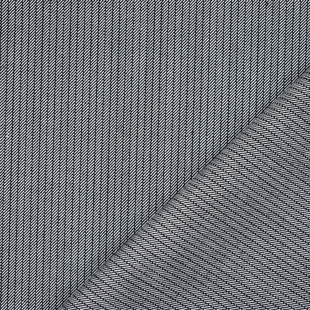 Black-White Polyester Wool Blend Striped Twill Woven Suiting Fabric
