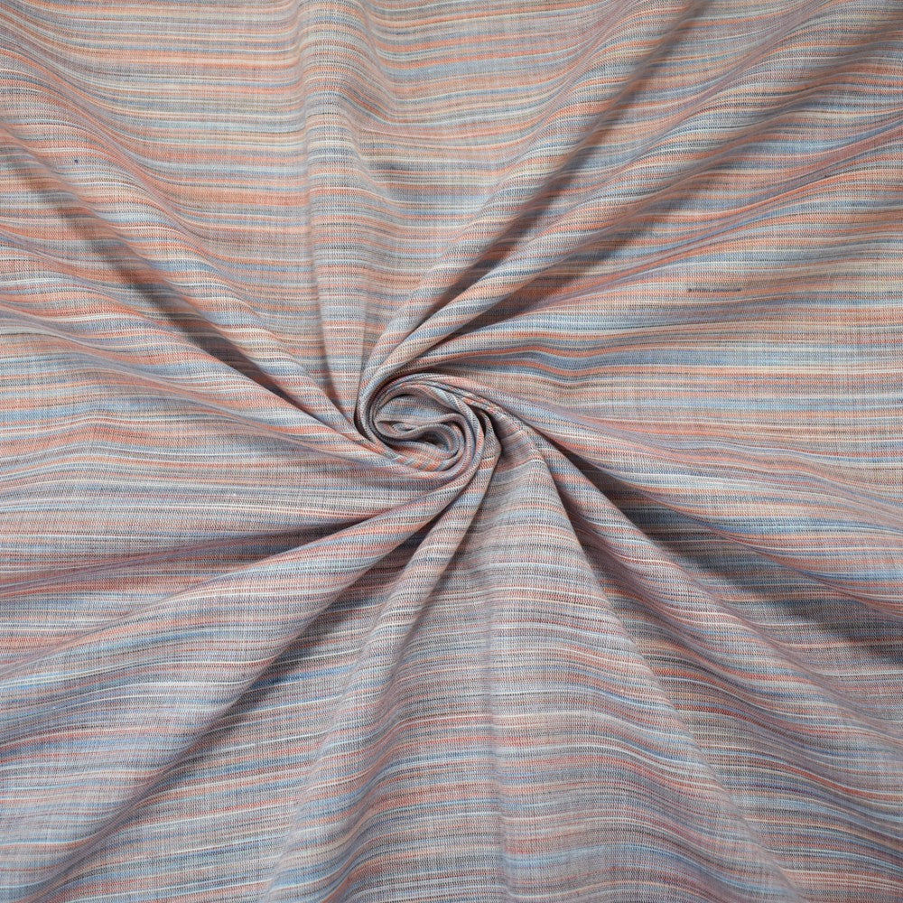 Blue-Orange-Multi Cotton Famous Maker Slub Horizontal Stripe Woven Fabric