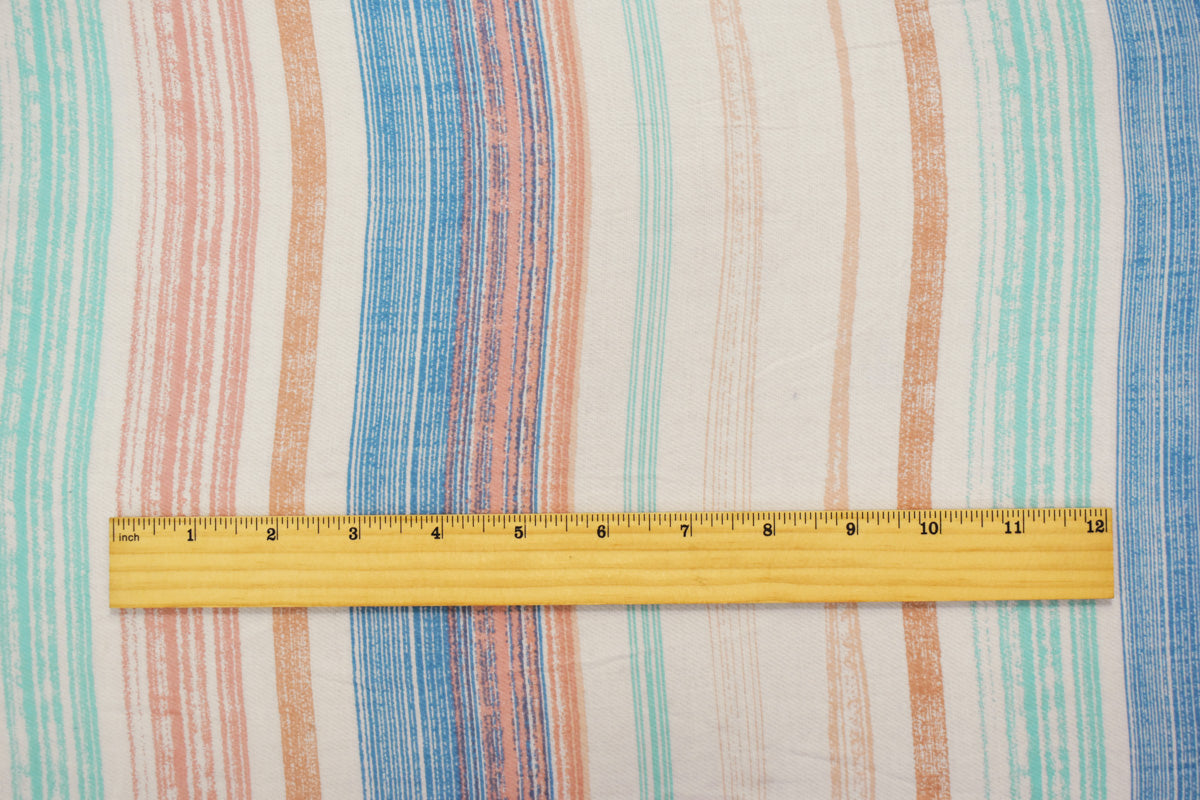 Blue-Orange-Multi Famous Maker Cotton Stripe Printed Lawn Woven Fabric
