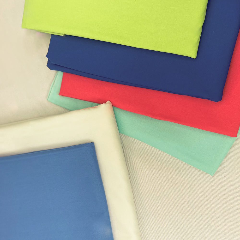 - Bundle fabrics include: 3/4 yd lime green solid, 1 3/4 yd blue solid, 1 5/8 yd mint solid, 1 1/8 yd coral pink solid, 3 yds cobalt blue solid, 5 1/4 yds cream white solid. Pattern is not included