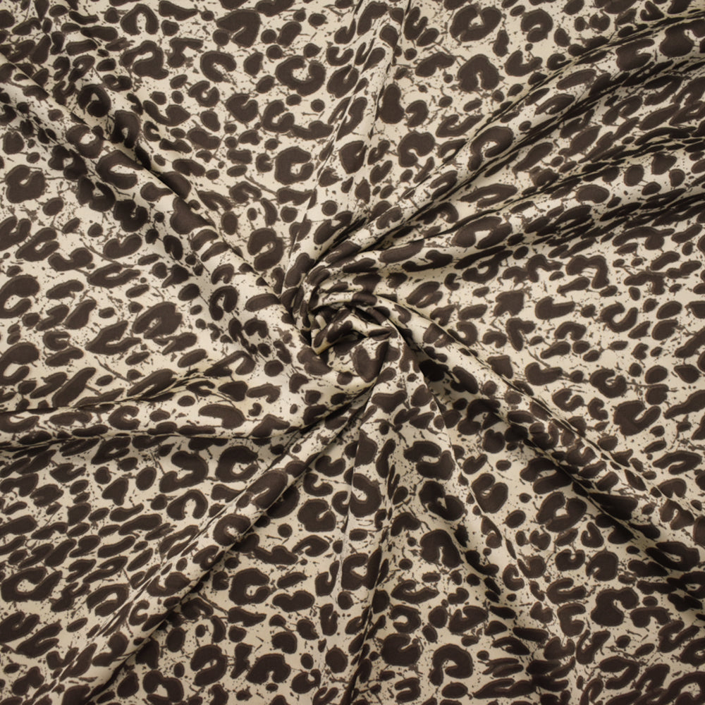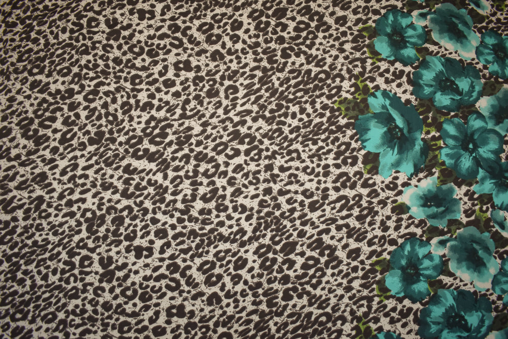 Brown-Multi Poly Leopard Floral Border Printed Charmeuse Satin Woven Fabric