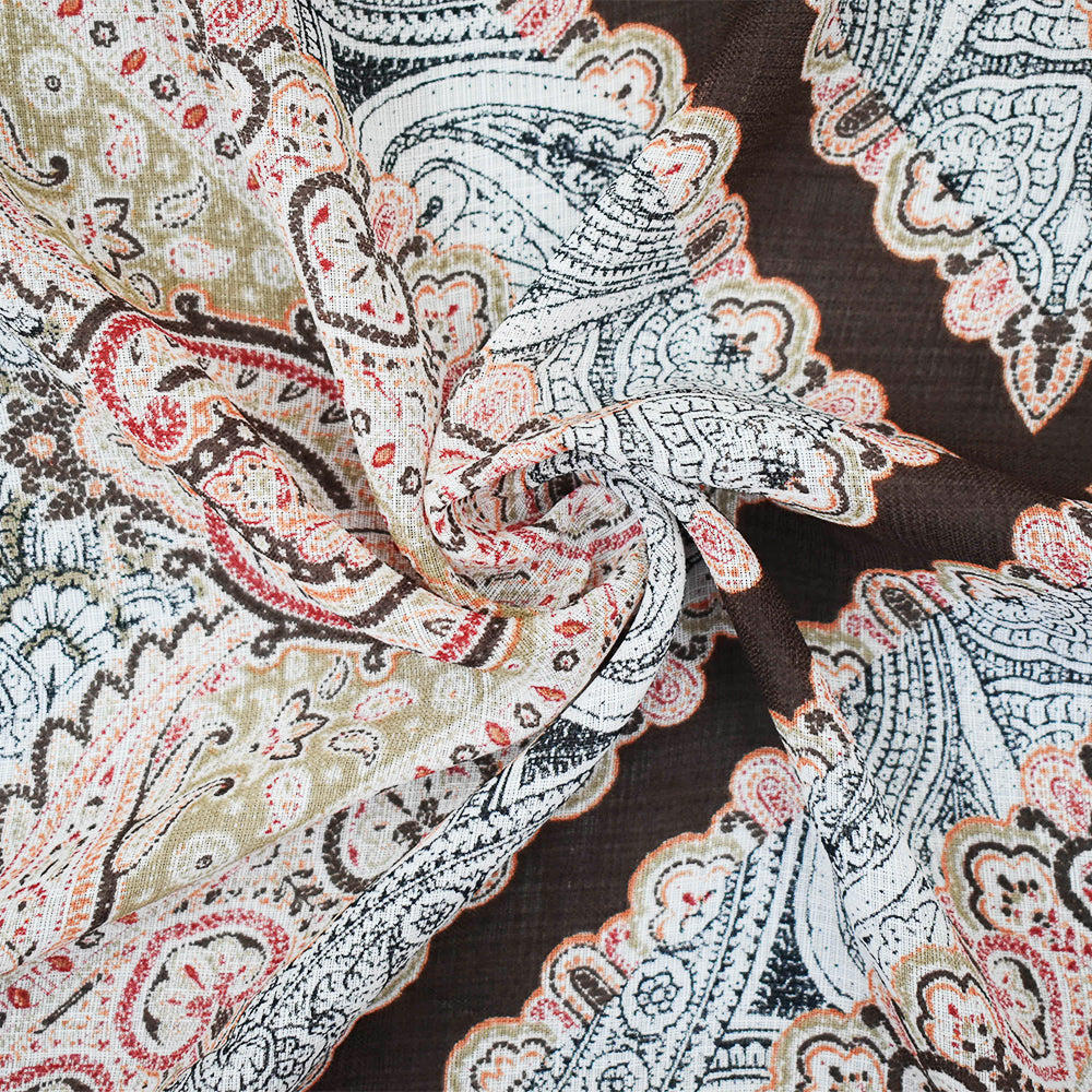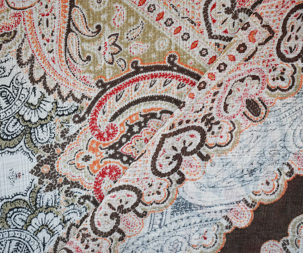 Brown-Orange-Multi Nylon Tile Baroque Printed Sheer Woven Fabric