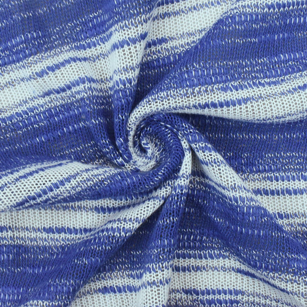 Cartoon Blue-White Slub Stripe Poly Rayon Jersey Knit Fabric