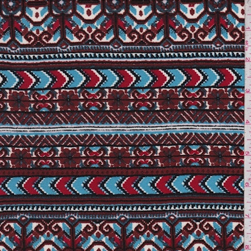 Cherry Brown/Sky Blue Deco Stripe Rayon Challis Fabric
