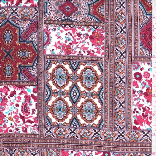 Coral Red/Orange Moroccan Block Crepon Fabric