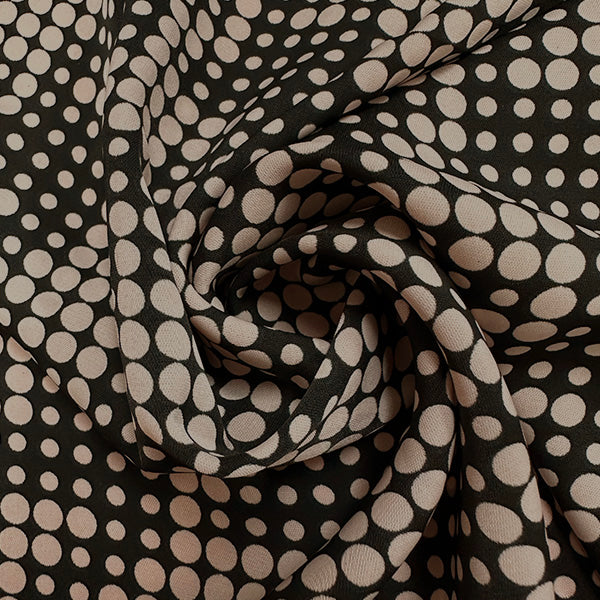 Cream Dot Print Poly Peachskin Fabric